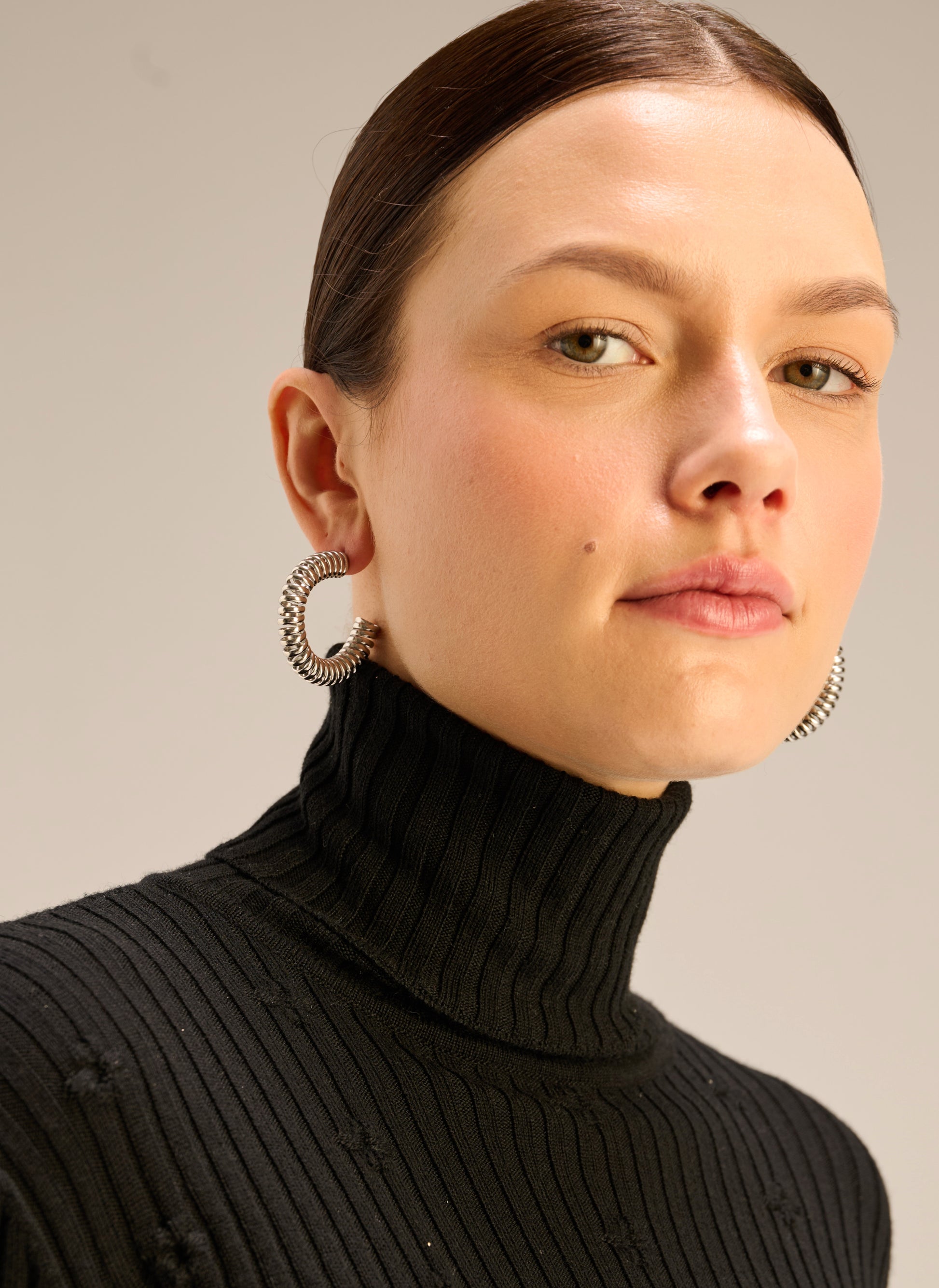 Półokrągłe kolczyki sprężynki, wykonane ze stali nierdzewnej w srebrnym kolorze. Ze względów higienicznych produkt nie podlega zwrotowi. Należy pamiętać, że przy intensywnym użytkowaniu biżuteria pozłacana może stracić swój pierwotny kolor. Unikaj wody i perfum, aby jak najdłużej zachowała swój najlepszy wygląd.