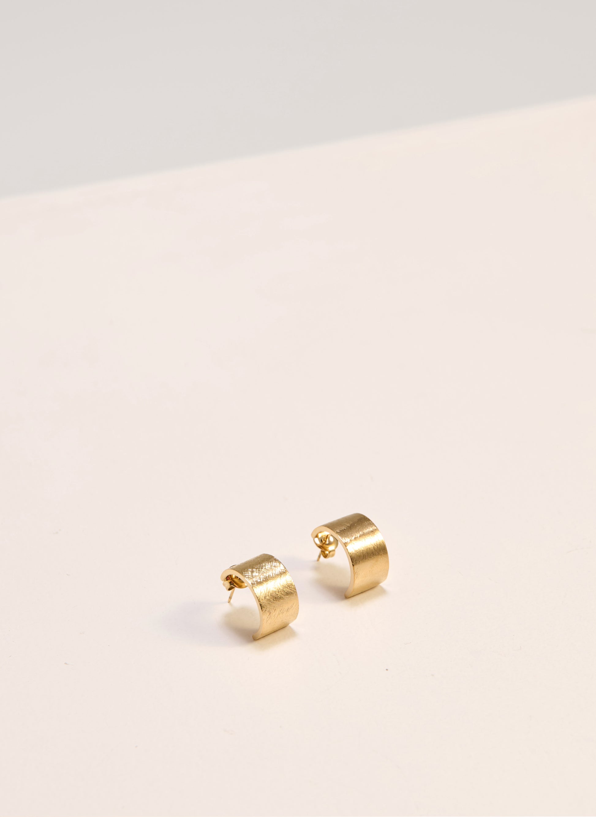 Delikatne kolczyki o półokrągłym kształcie, wykonane ze stali nierdzewnej w złotym kolorze. Ze względów higienicznych produkt nie podlega zwrotowi. Należy pamiętać, że przy intensywnym użytkowaniu biżuteria pozłacana może stracić swój pierwotny kolor. Unikaj wody i perfum, aby jak najdłużej zachowała swój najlepszy wygląd.