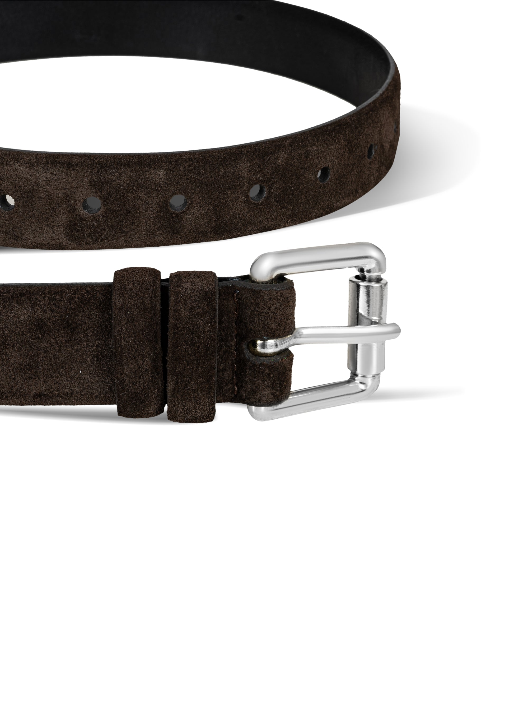 Pasek z zamszu w brązowym kolorze z srebrną klamrą - Lirone