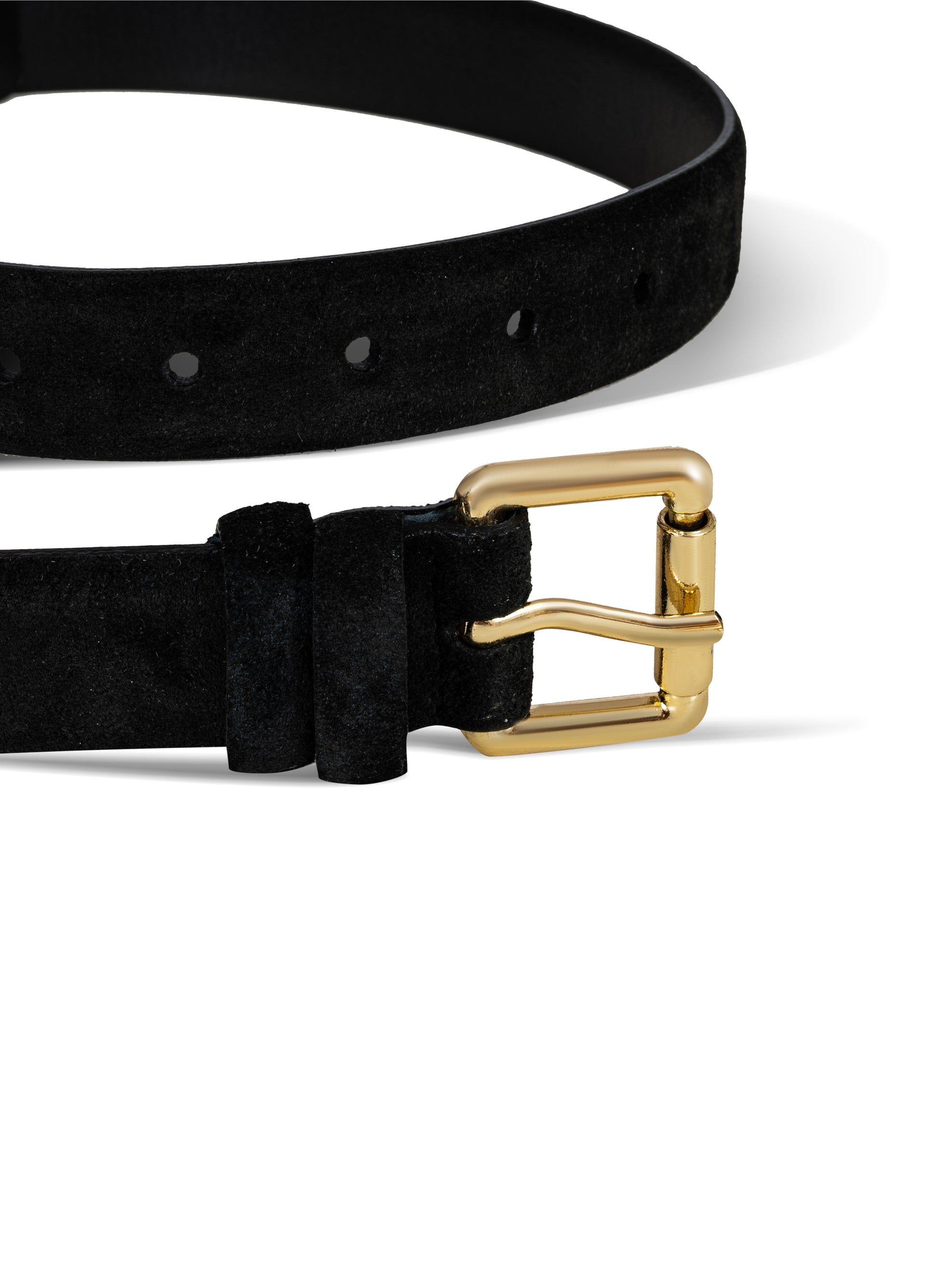 Pasek z zamszu w czarnym kolorze ze złotą klamrą - Lirone