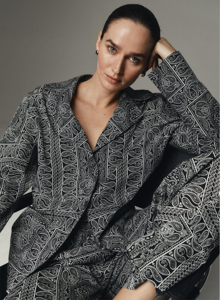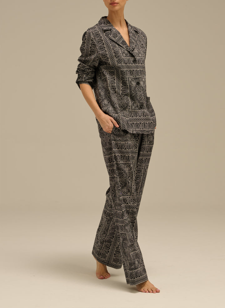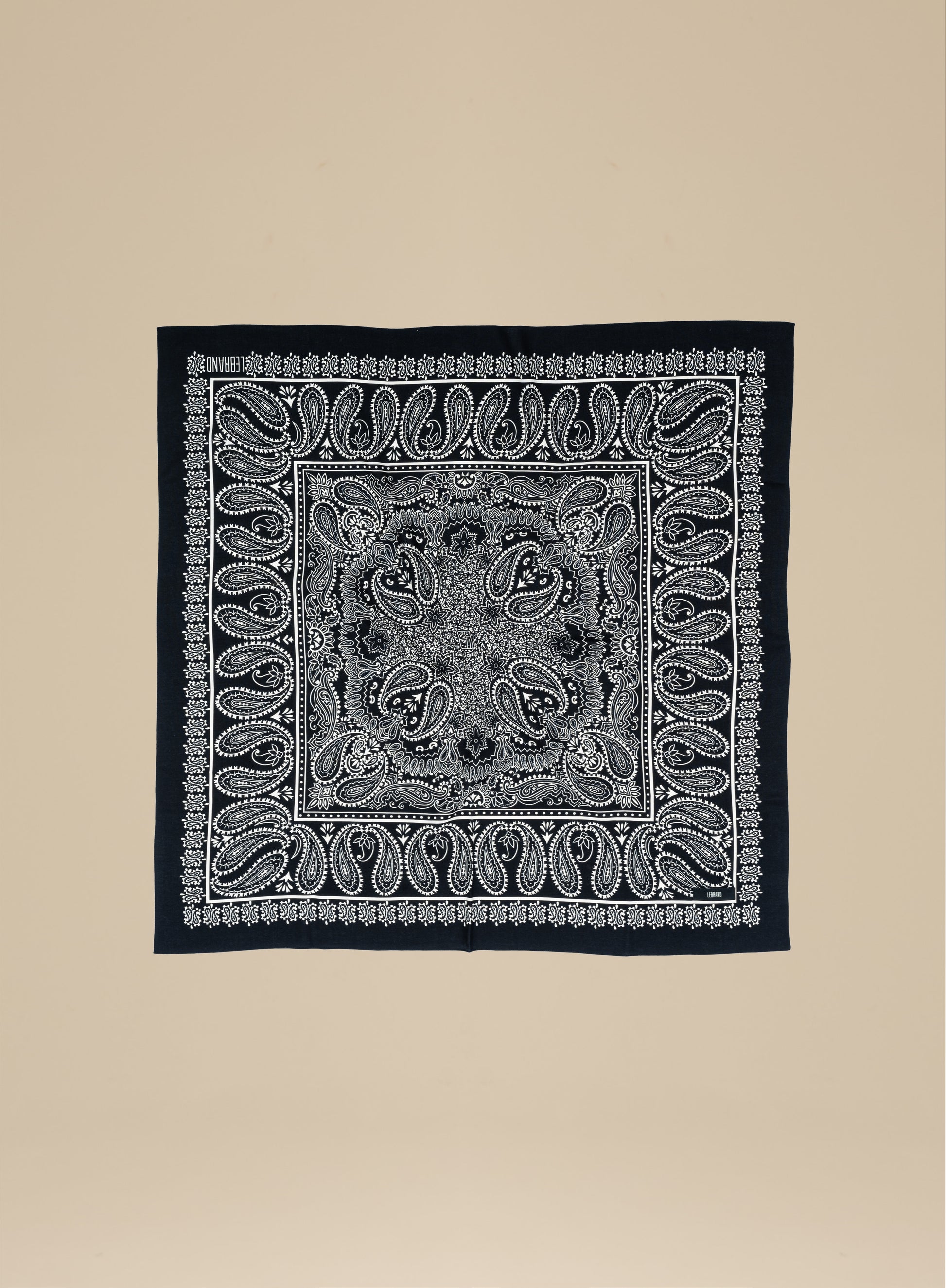 Uniwersalna bandana, ręcznie wykończona, wykonana z miękkiej wiskozy w kolorze czarno-ecru.