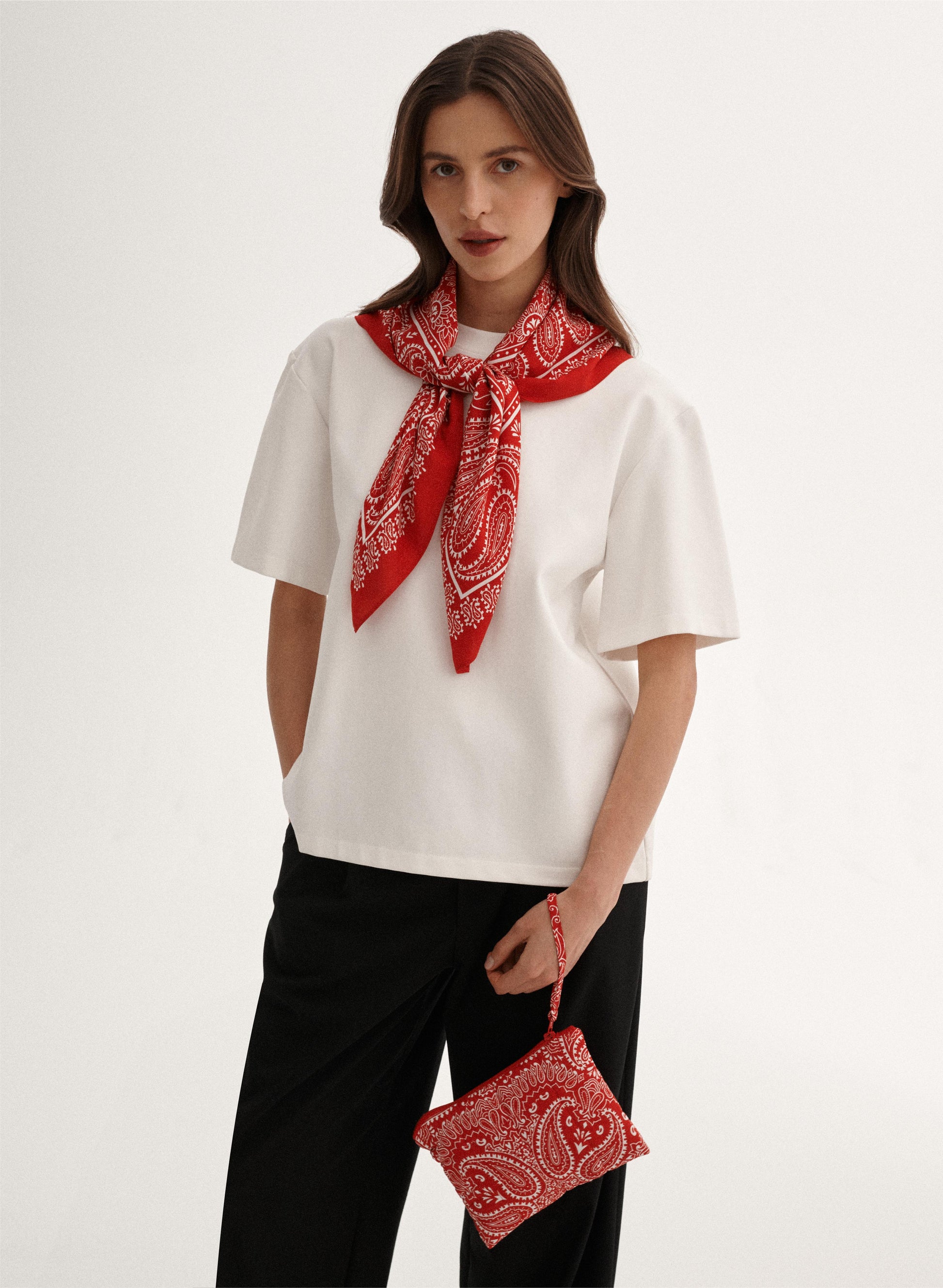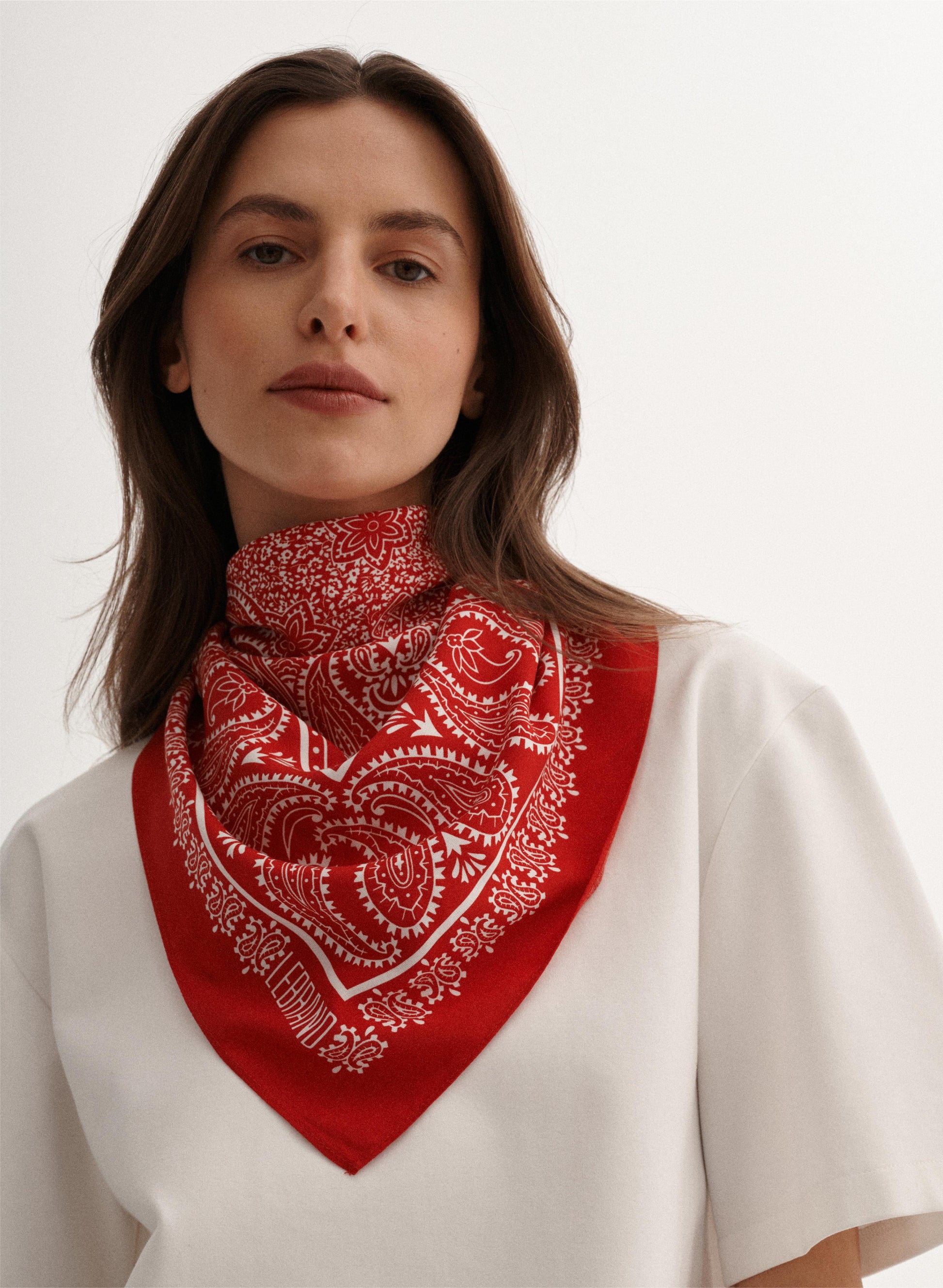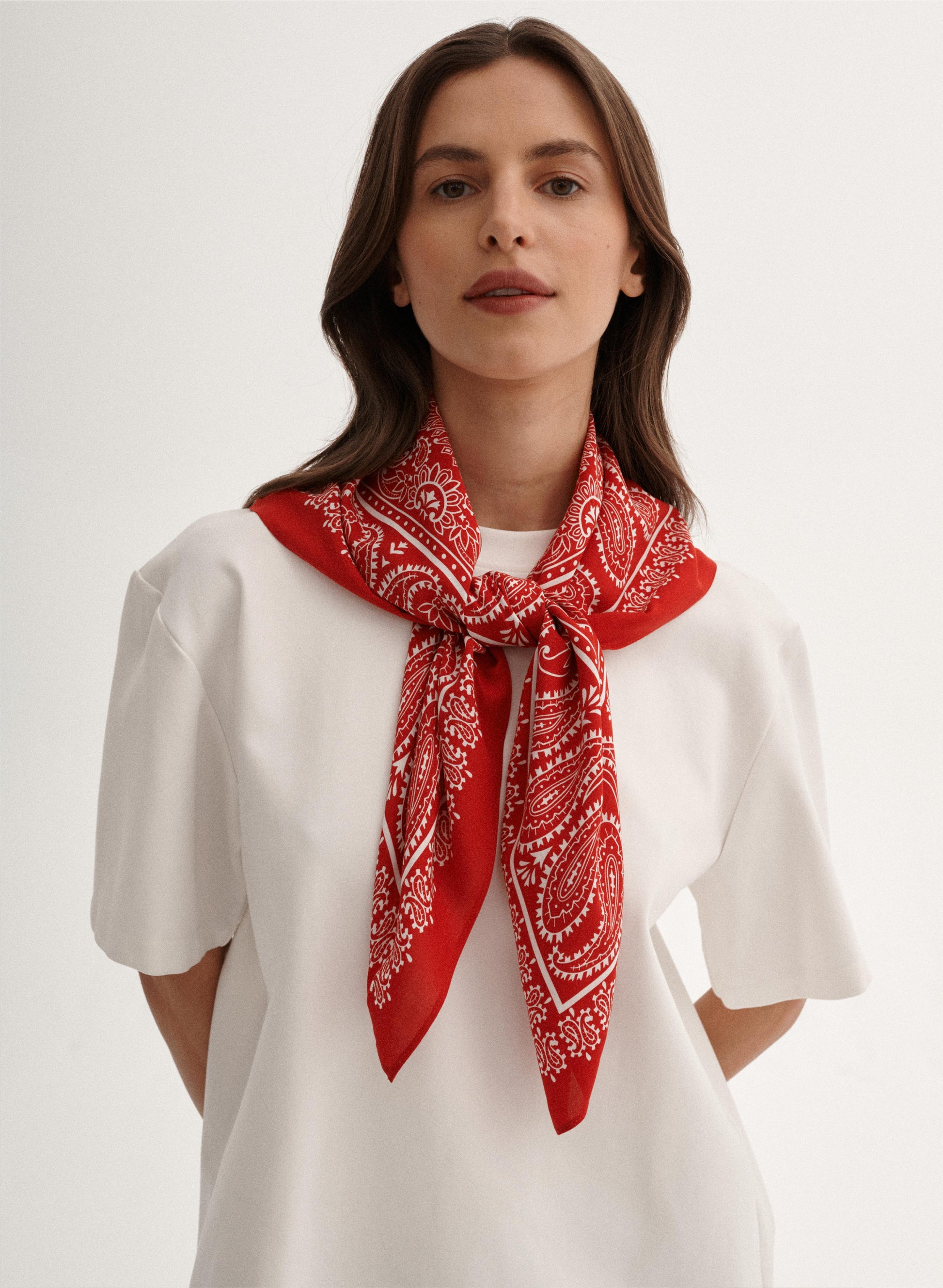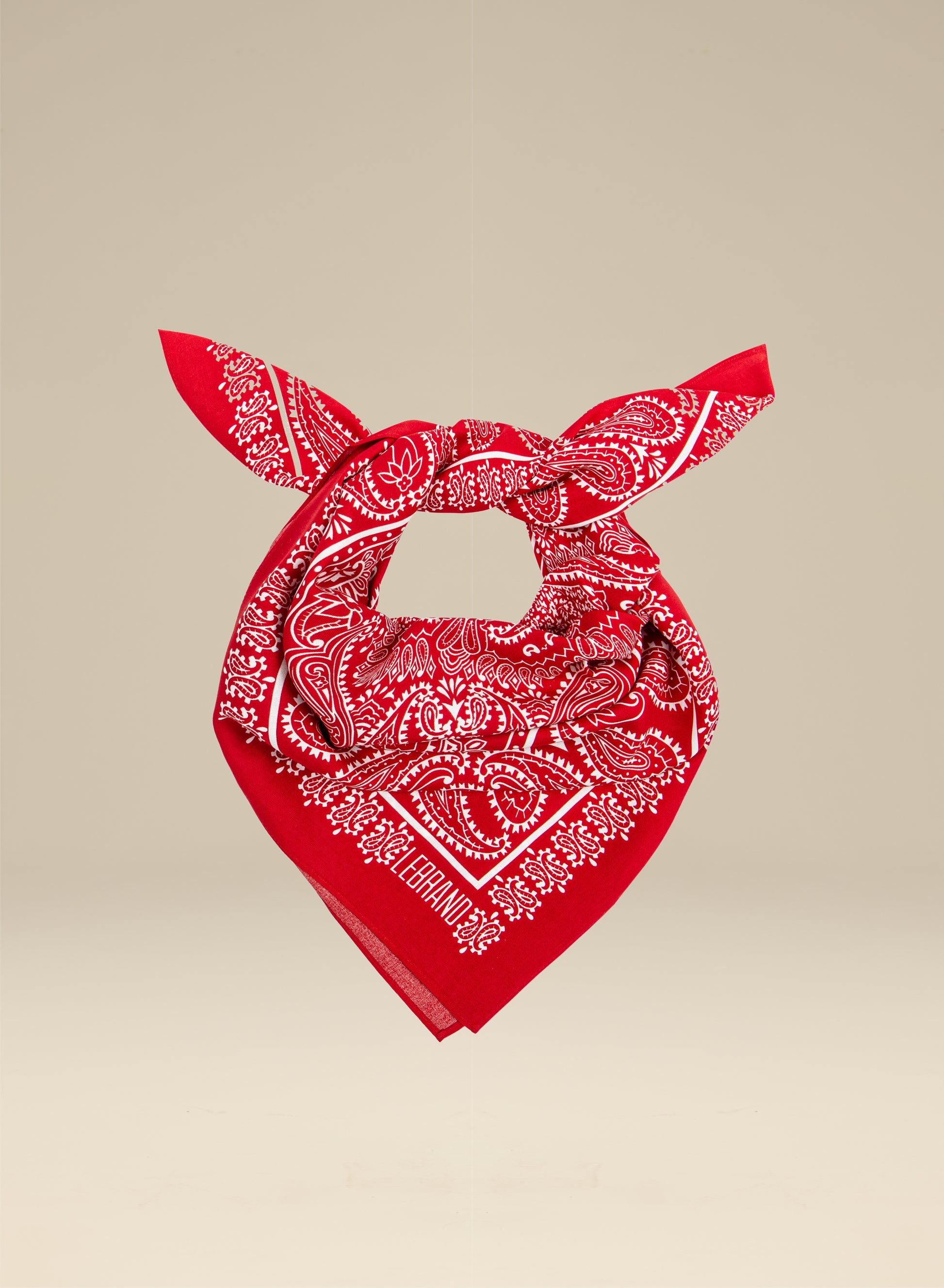 Uniwersalna bandana, ręcznie wykończona, wykonana z miękkiej wiskozy w kolorze czerwono-białym.