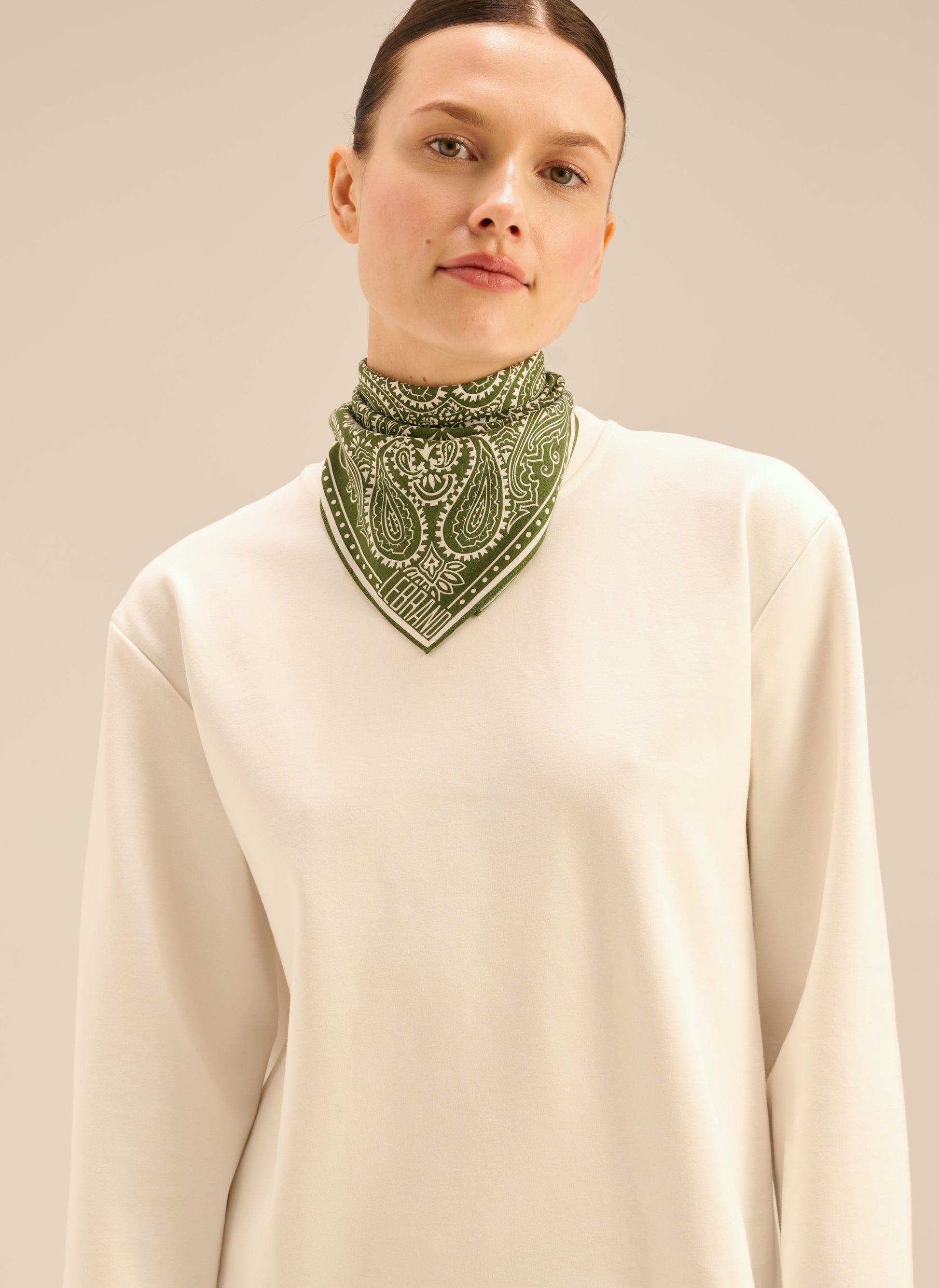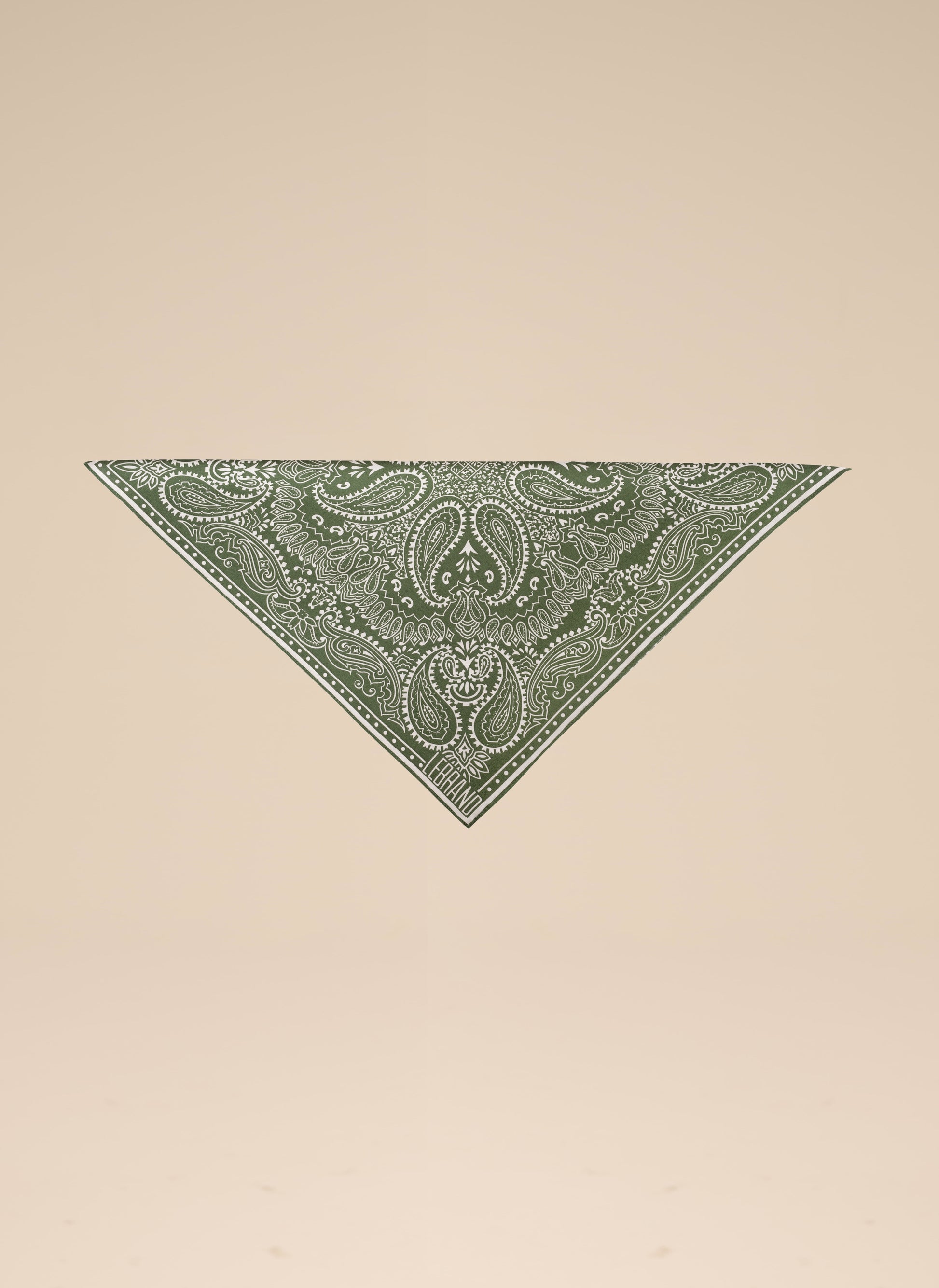 Uniwersalna bandana w rozmiarze mini, ręcznie wykończona, wykonana z miękkiej wiskozy w kolorze zielonym.