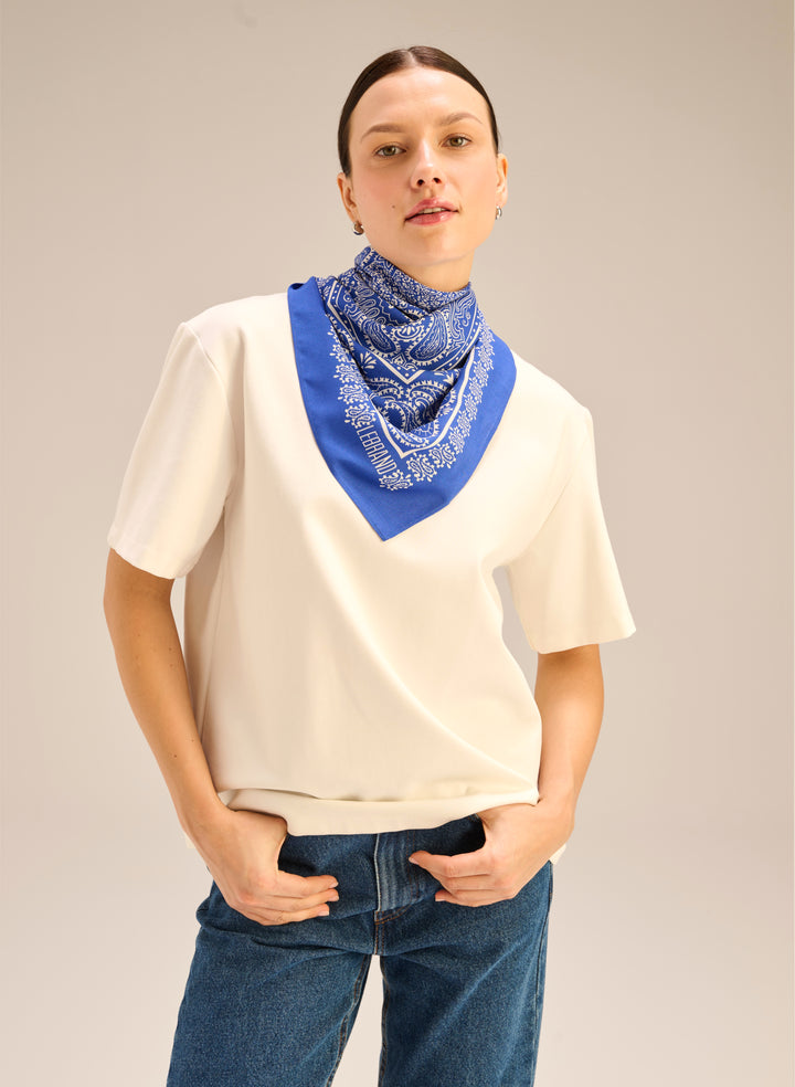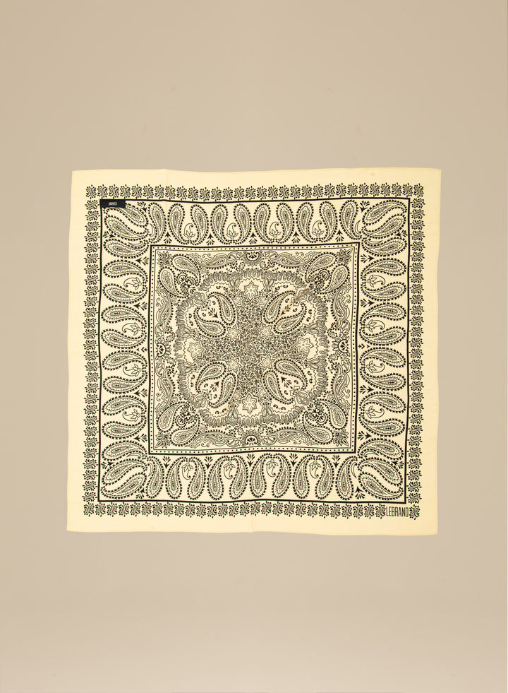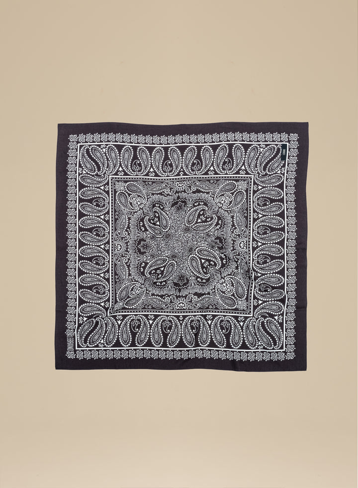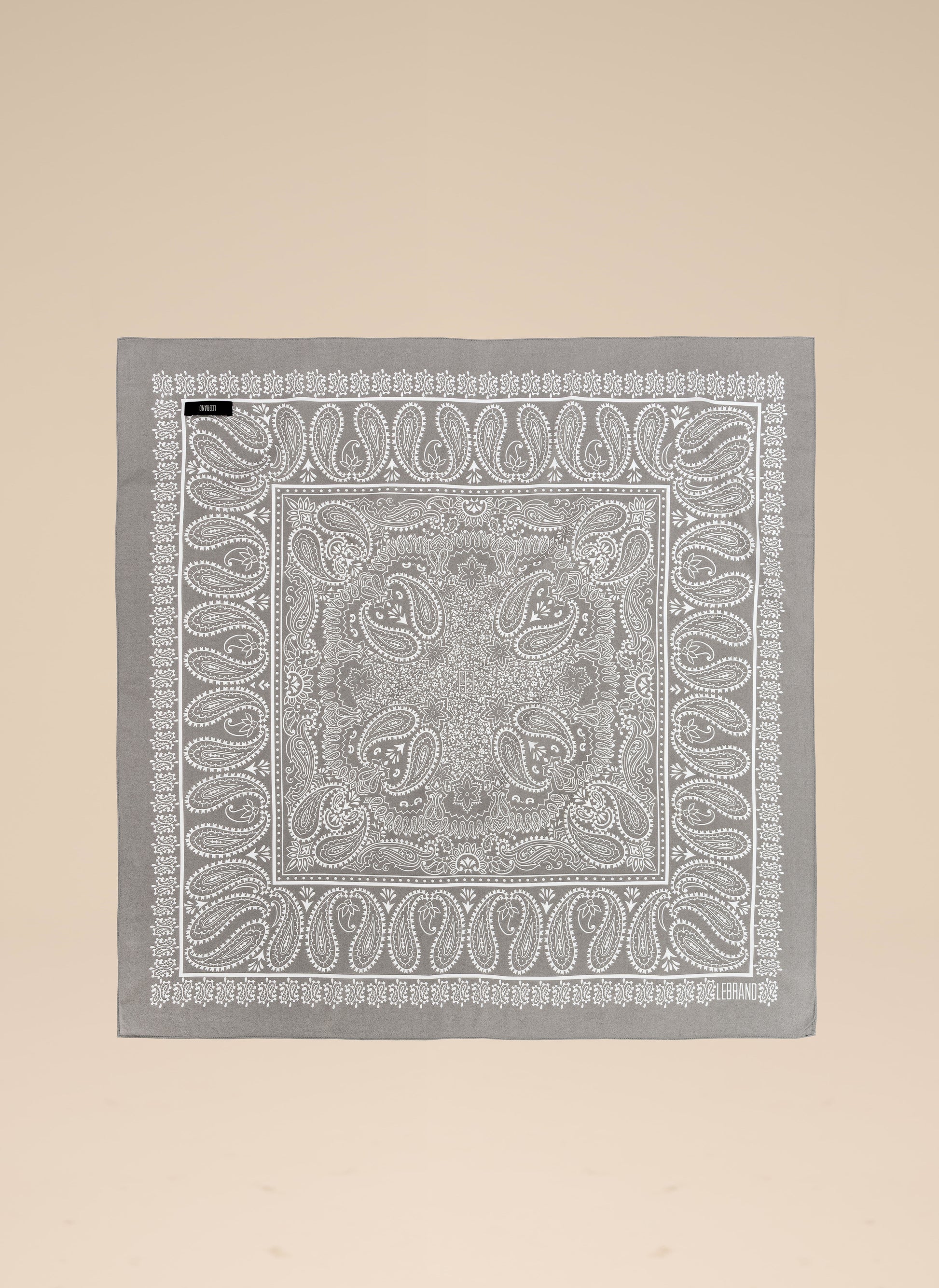 Uniwersalna chusta typu bandana, ręcznie wykończona, wykonana z miękkiej wiskozy w kolorze szarym.