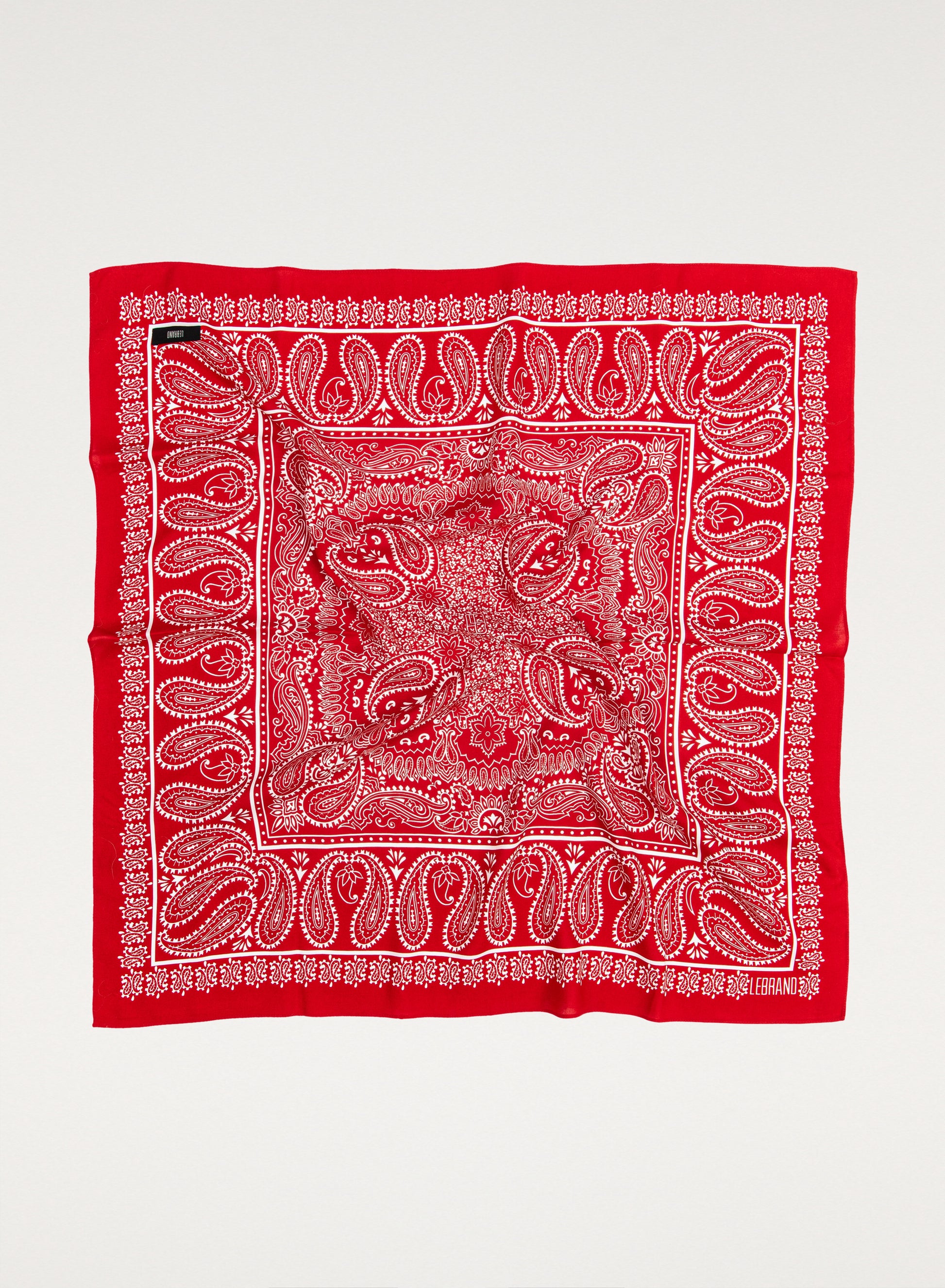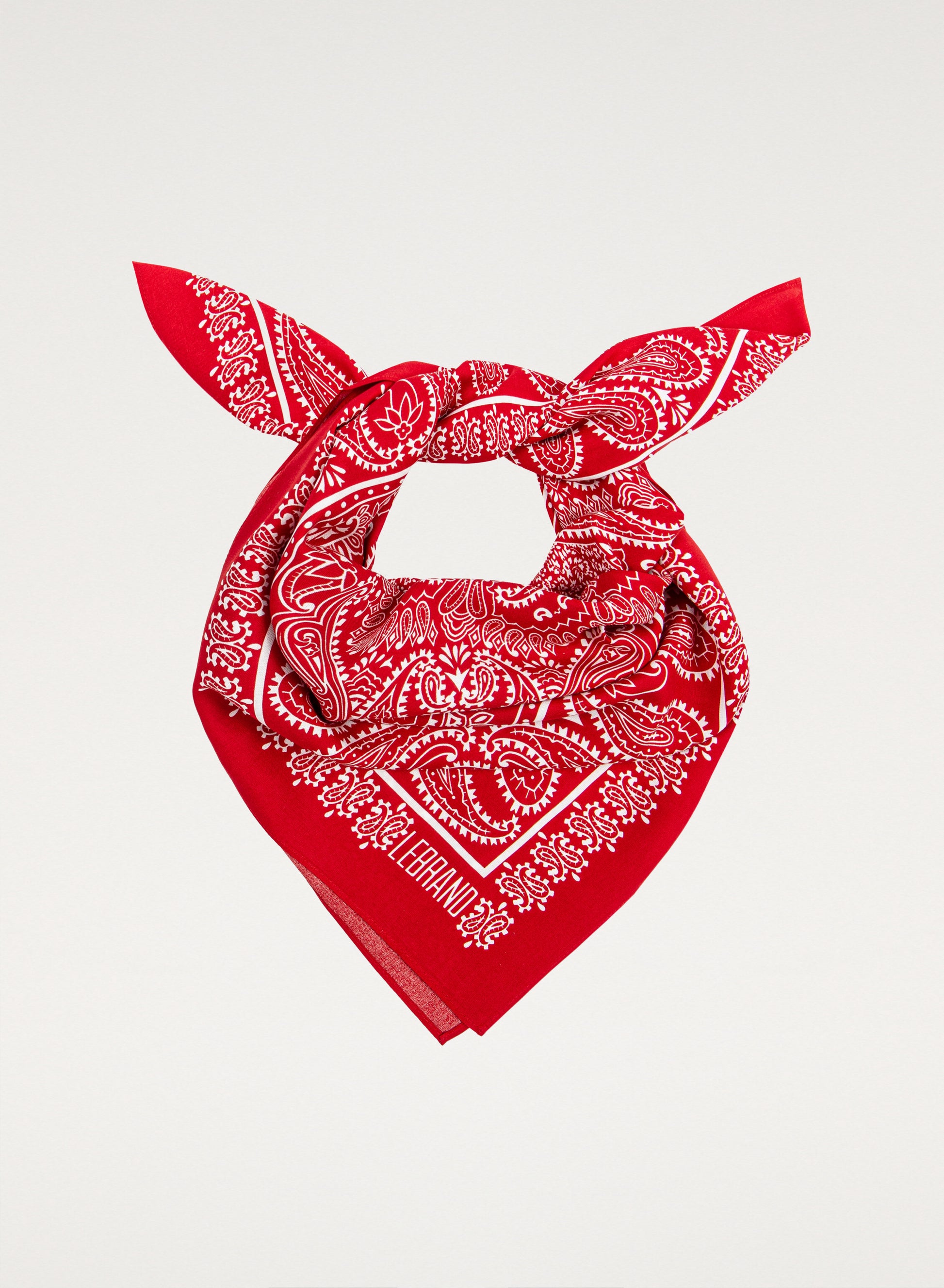 Uniwersalna bandana, ręcznie wykończona, wykonana z miękkiej wiskozy w kolorze czerwono-białym.