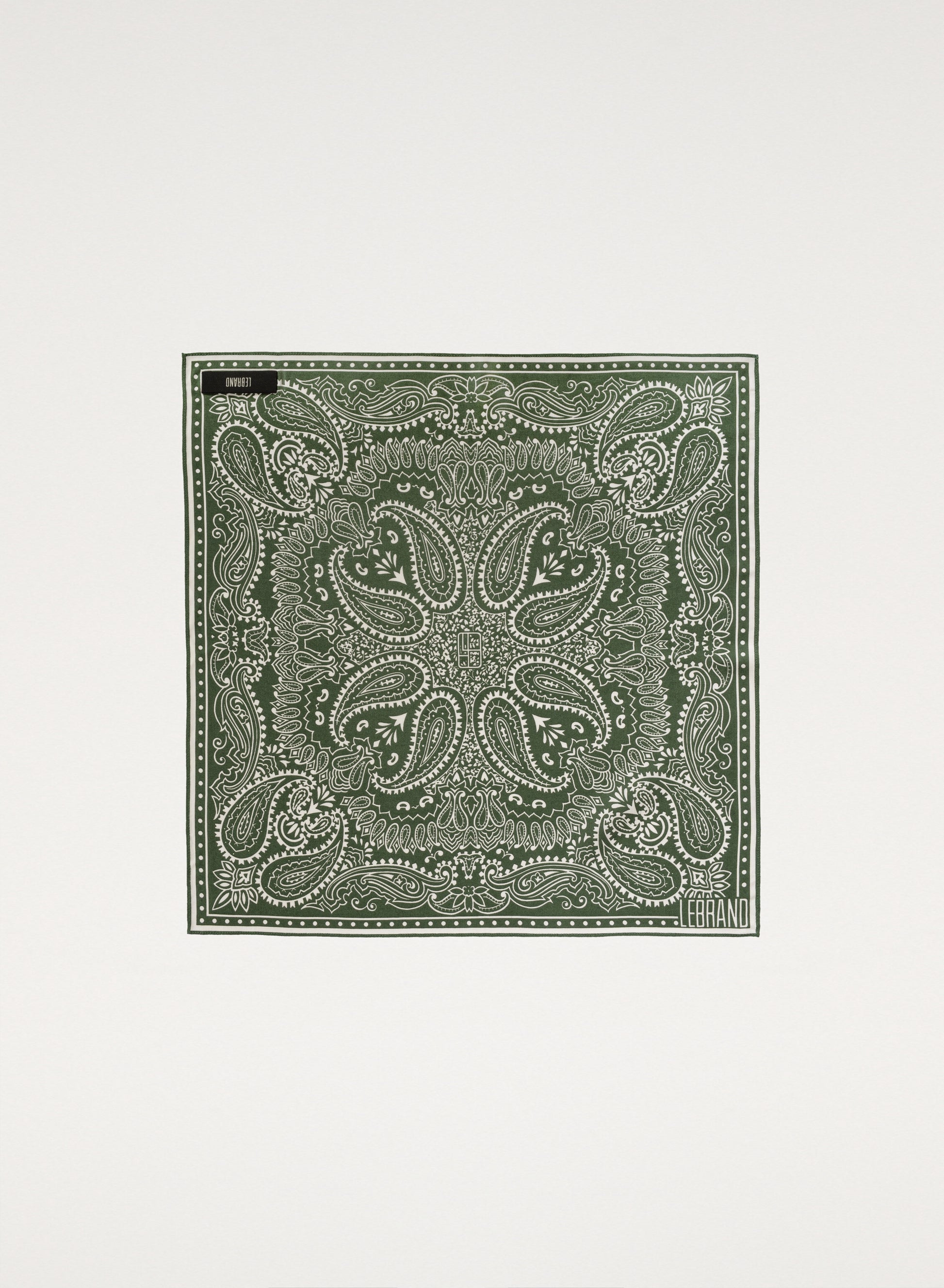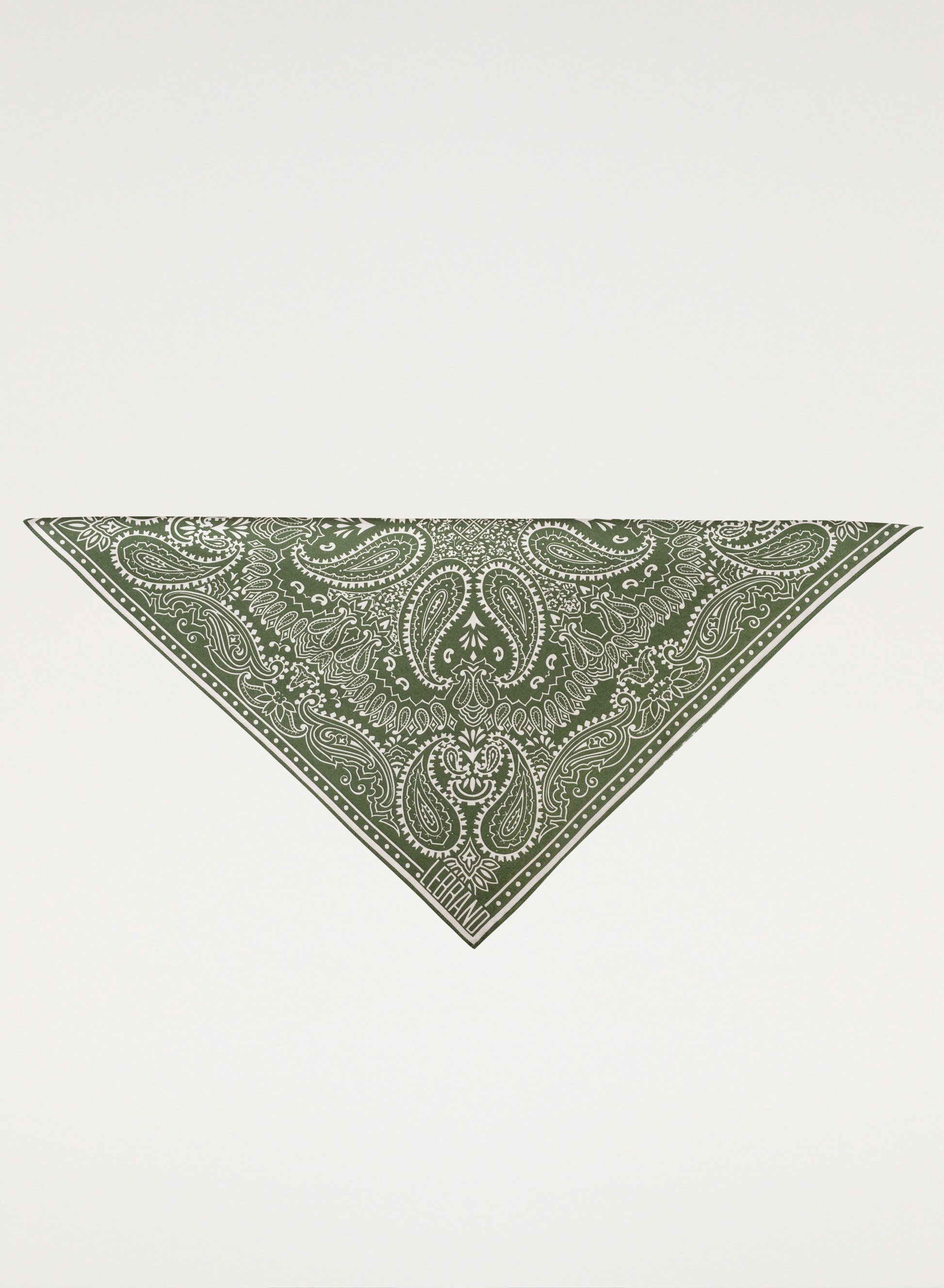 Uniwersalna bandana w rozmiarze mini, ręcznie wykończona, wykonana z miękkiej wiskozy w kolorze zielonym.