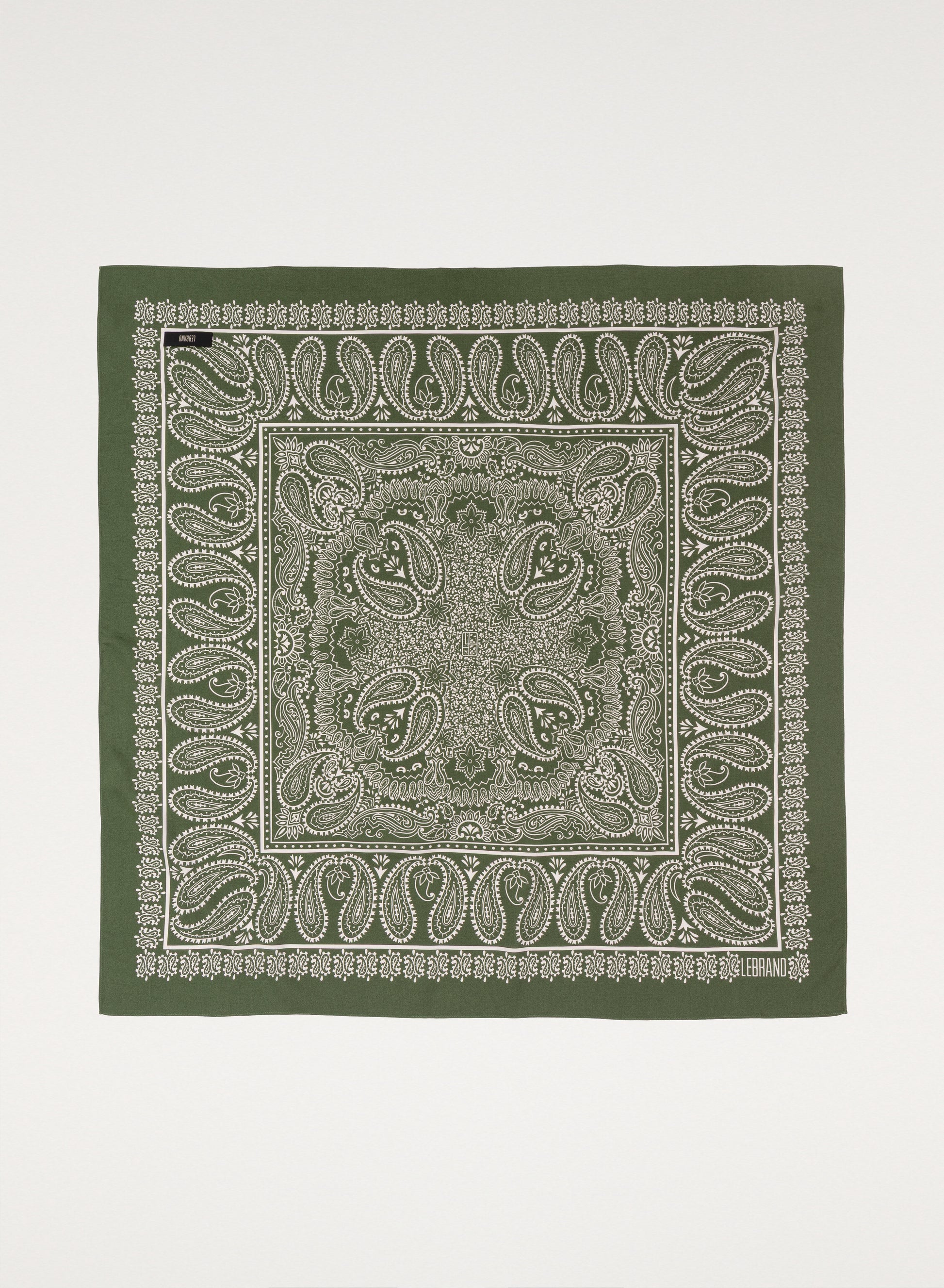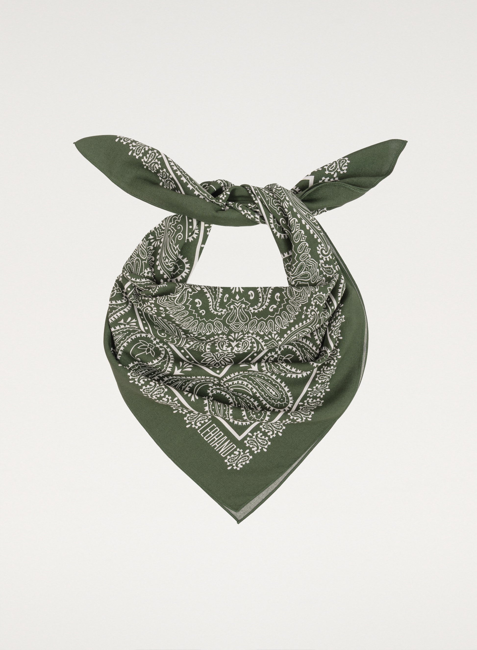 Uniwersalna chusta typu bandana, ręcznie wykończona, wykonana z miękkiej wiskozy w kolorze zielonym.