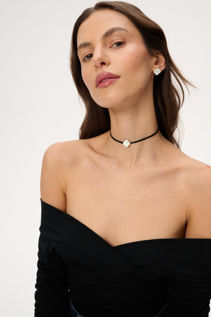 Choker w kształcie kwiatu pokryty srebrem 999 - Lylah