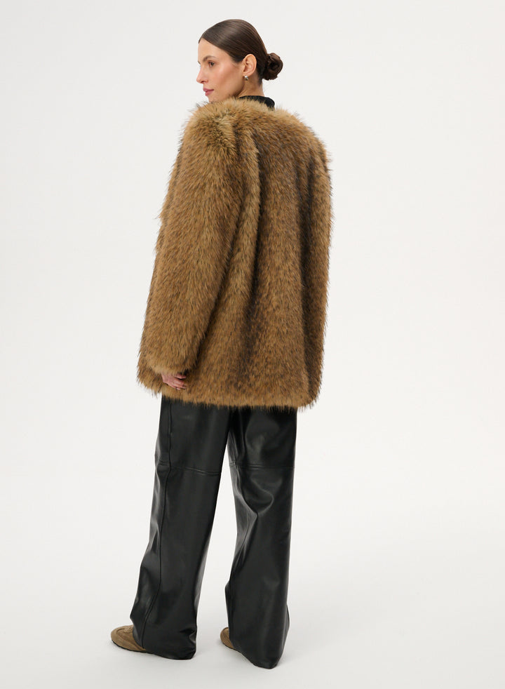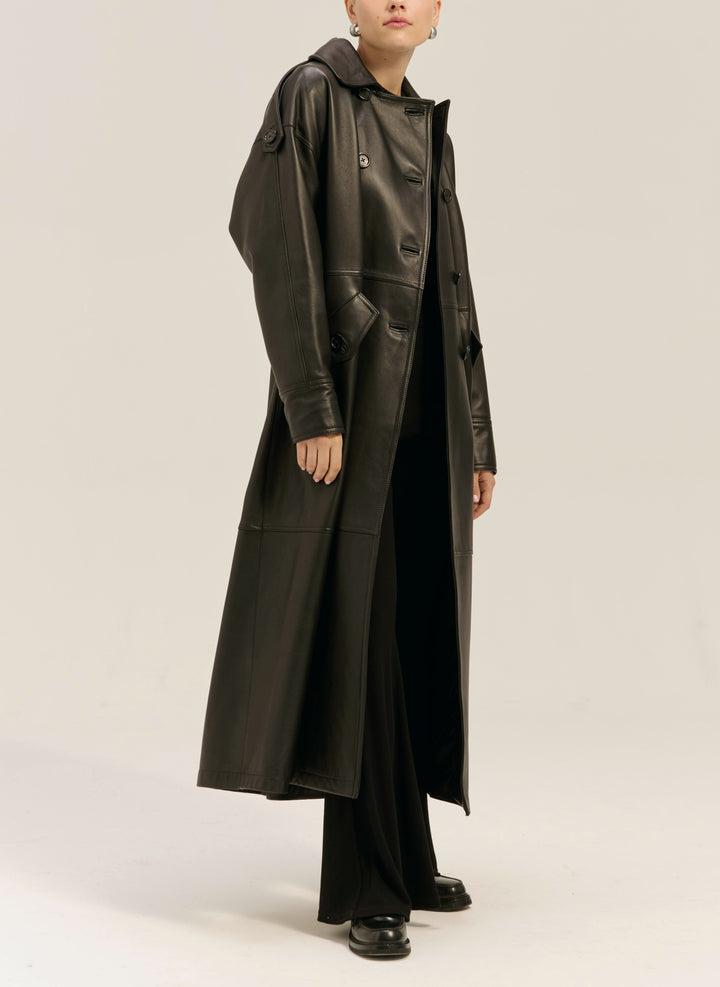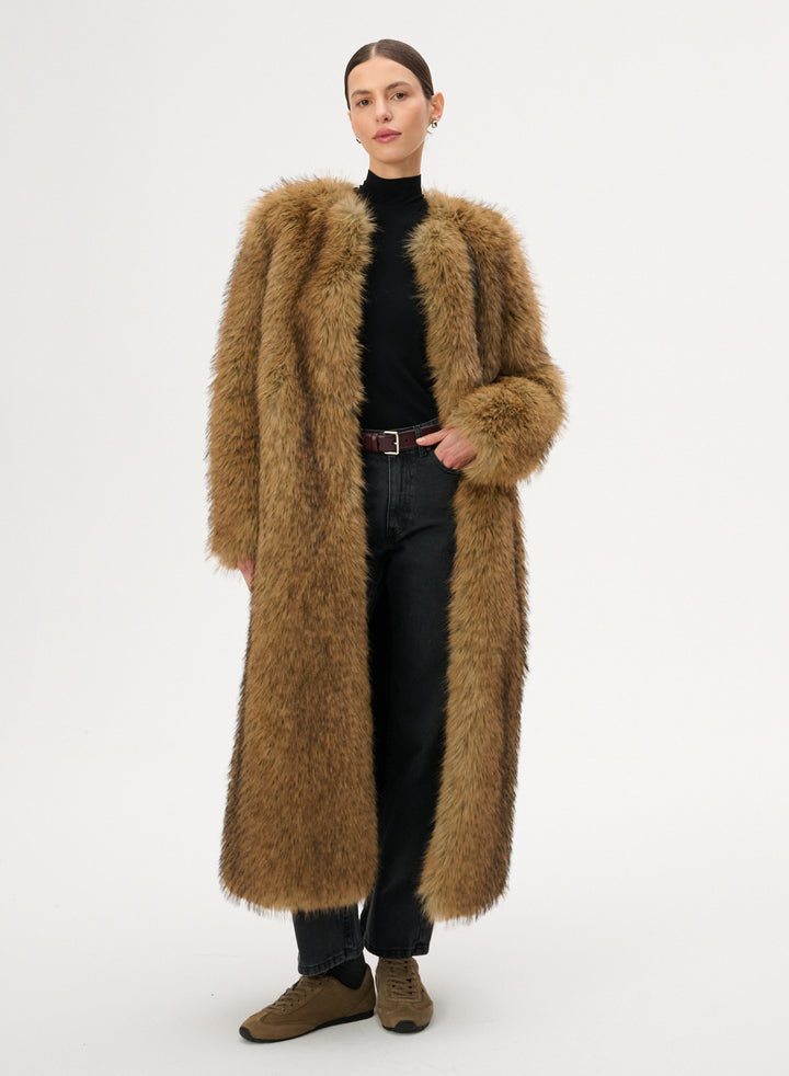 Płaszcz maxi z zamszu o kroju oversize brązowy - Este