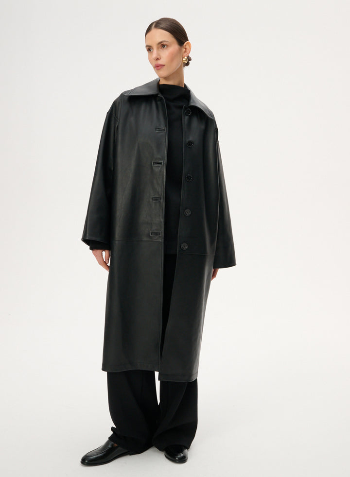 Płaszcz midi z wełny dziewiczej o prostym kroju czarny - Arni