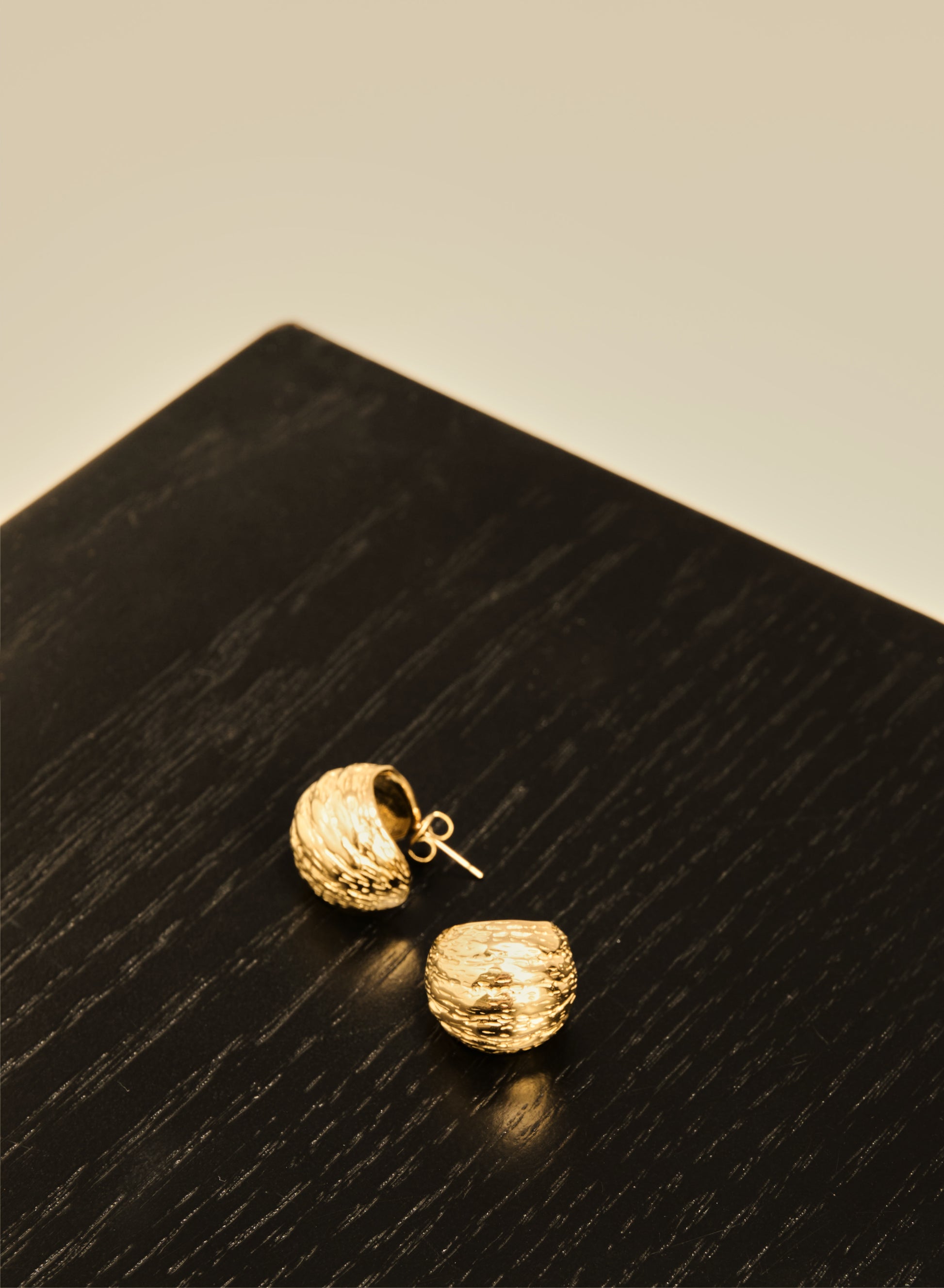 Okrągłe kolczyki o nieregularnej, żłobionej fakturze. Wykonane ze stali chirurgicznej w złotym kolorze. Ze względów higienicznych produkt nie podlega zwrotowi. Należy pamiętać, że przy intensywnym użytkowaniu biżuteria pozłacana może stracić swój pierwotny kolor. Unikaj wody i perfum, aby jak najdłużej zachowała swój najlepszy wygląd.