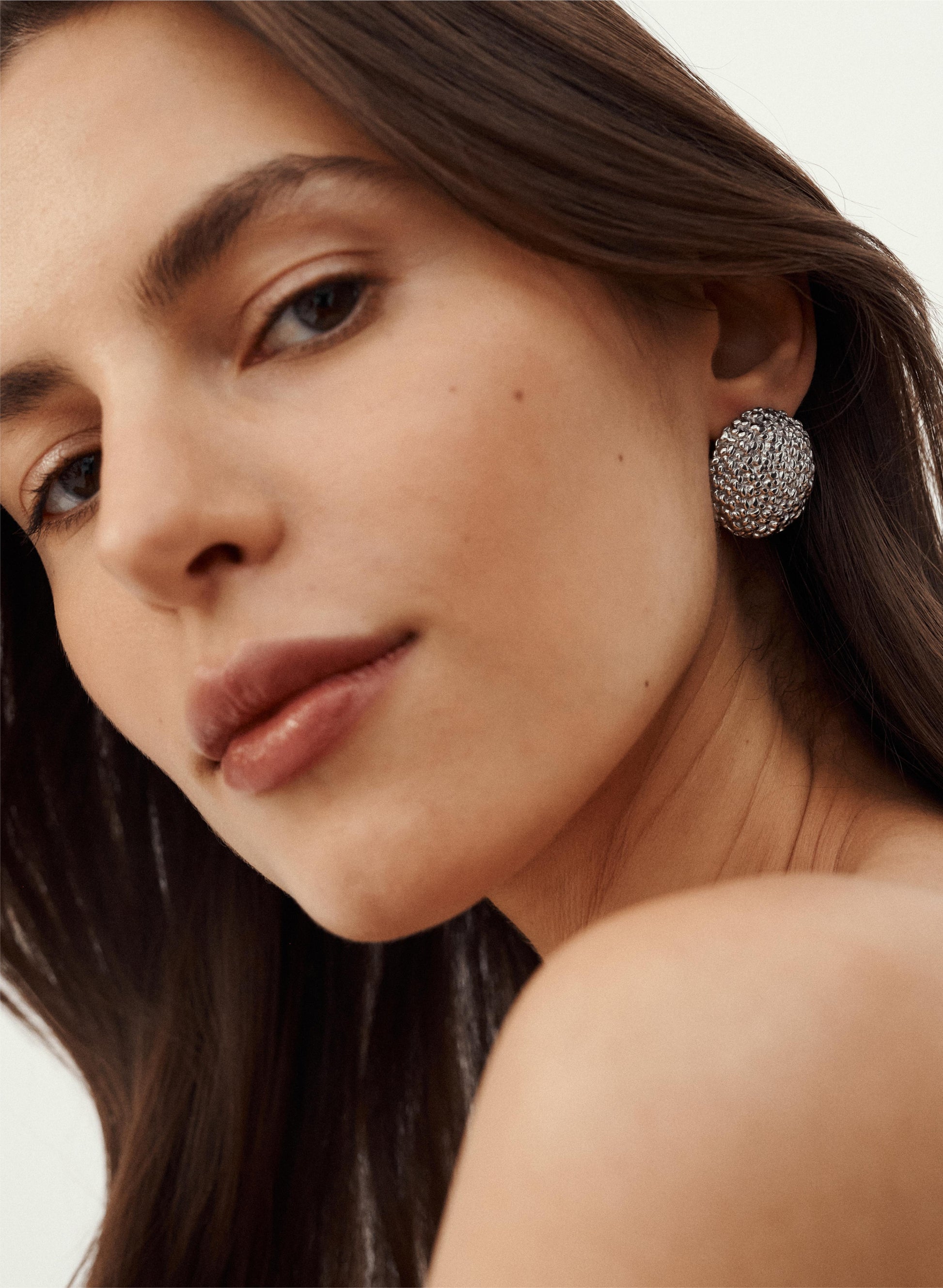 Kolczyki ze stali nierdzewnej o nieregularnej fakturze w kolorze srebrnym - Simone