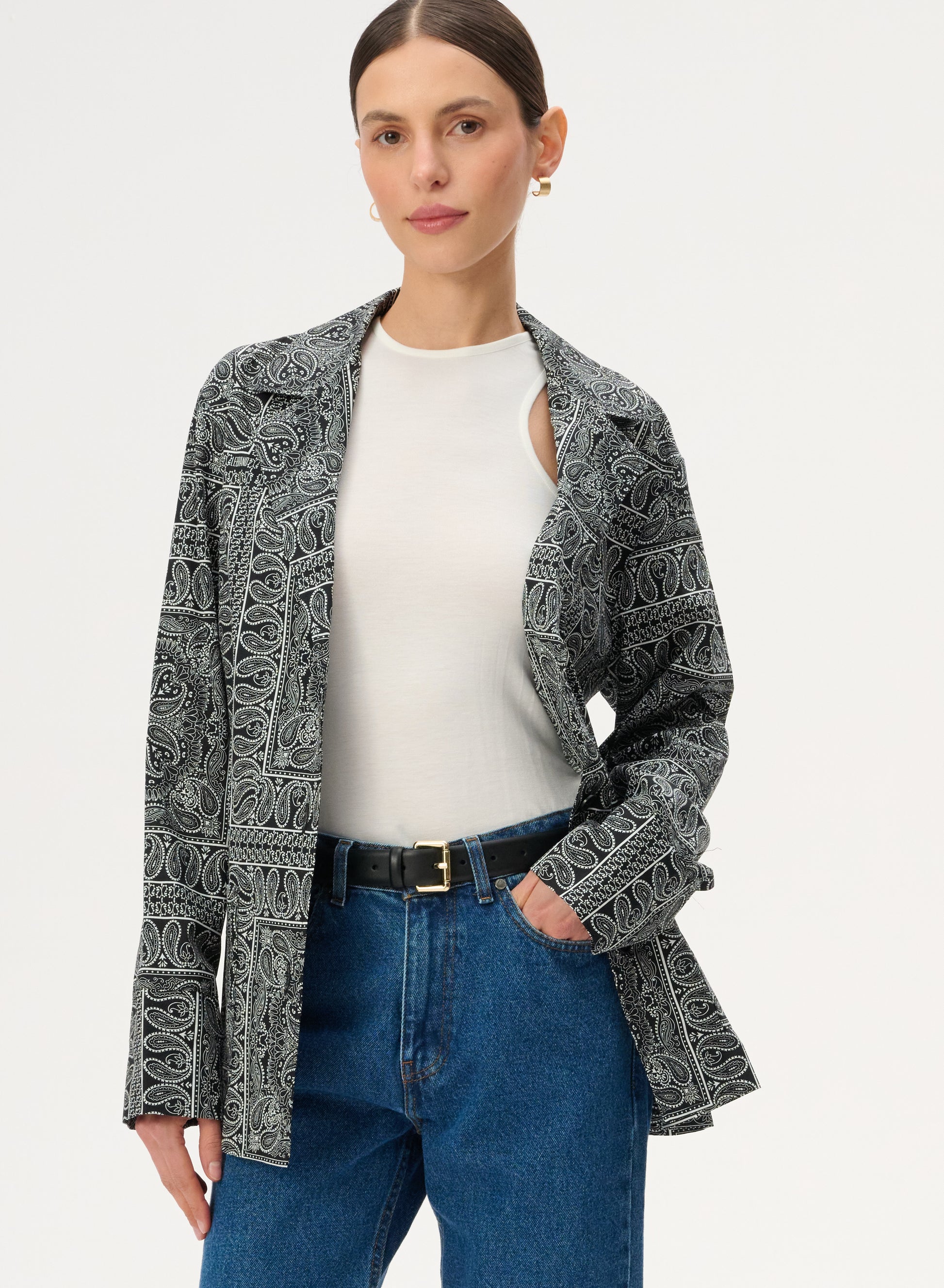 Klasyczny pasek wykonany z naturalnej, gładkiej skóry w odcieniu głębokiej czerni. Posiada kwadratową klamrę w złotym kolorze.