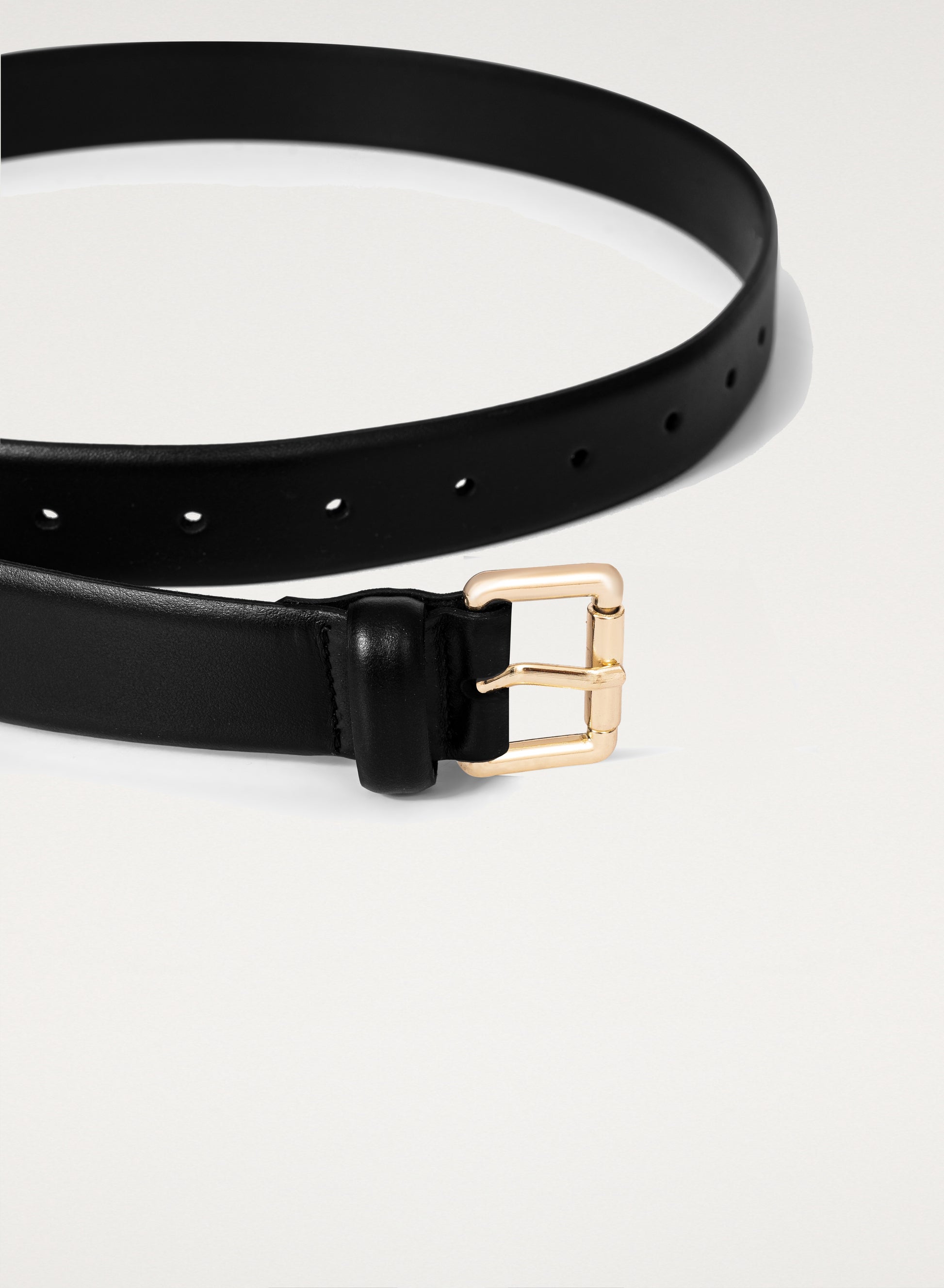 Pasek ze skóry w czarnym kolorze ze złotą klamrą - Lirone