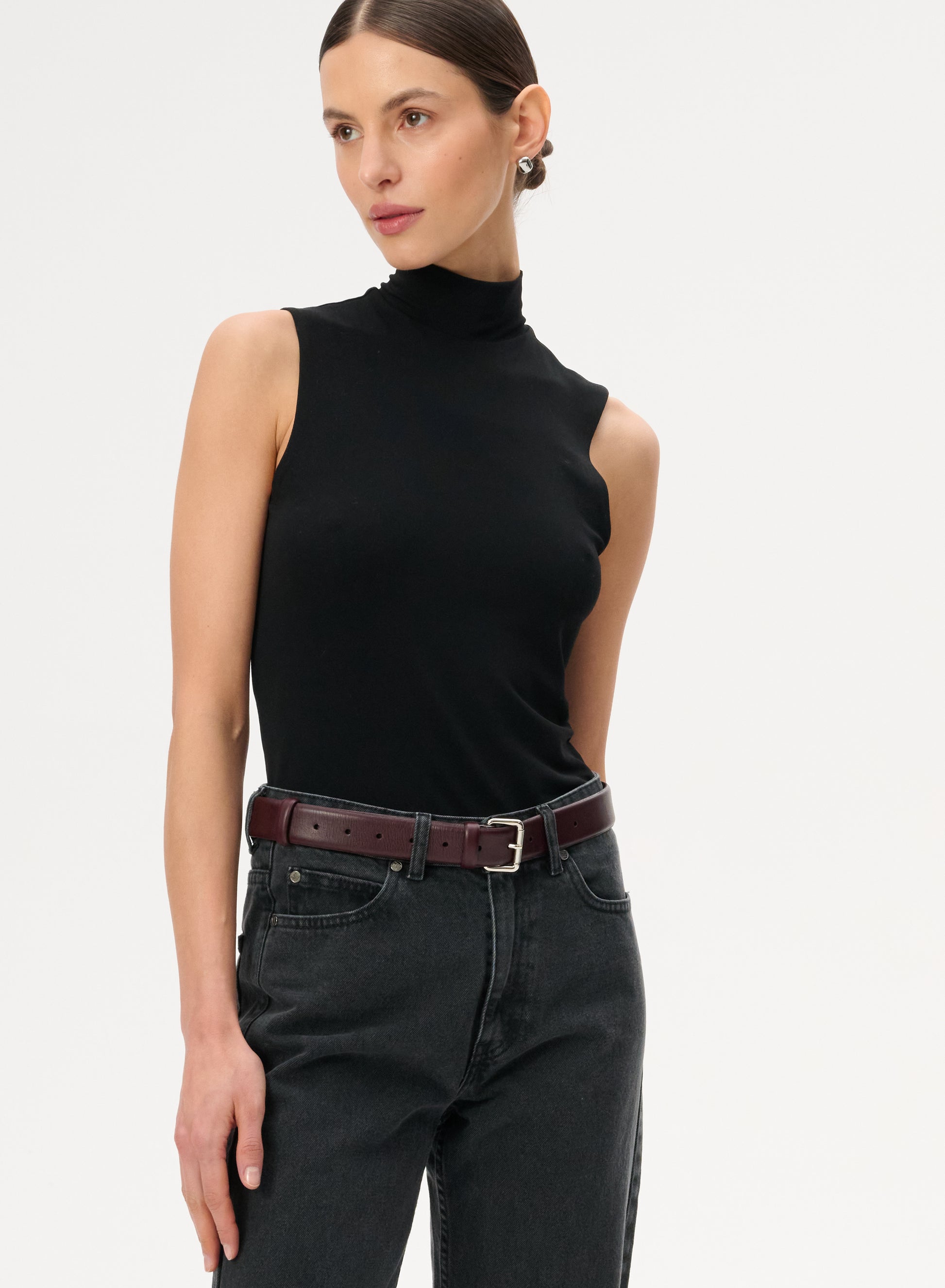 Pasek ze skóry w kolorze burgundowym ze srebrna klamrą - Lirone