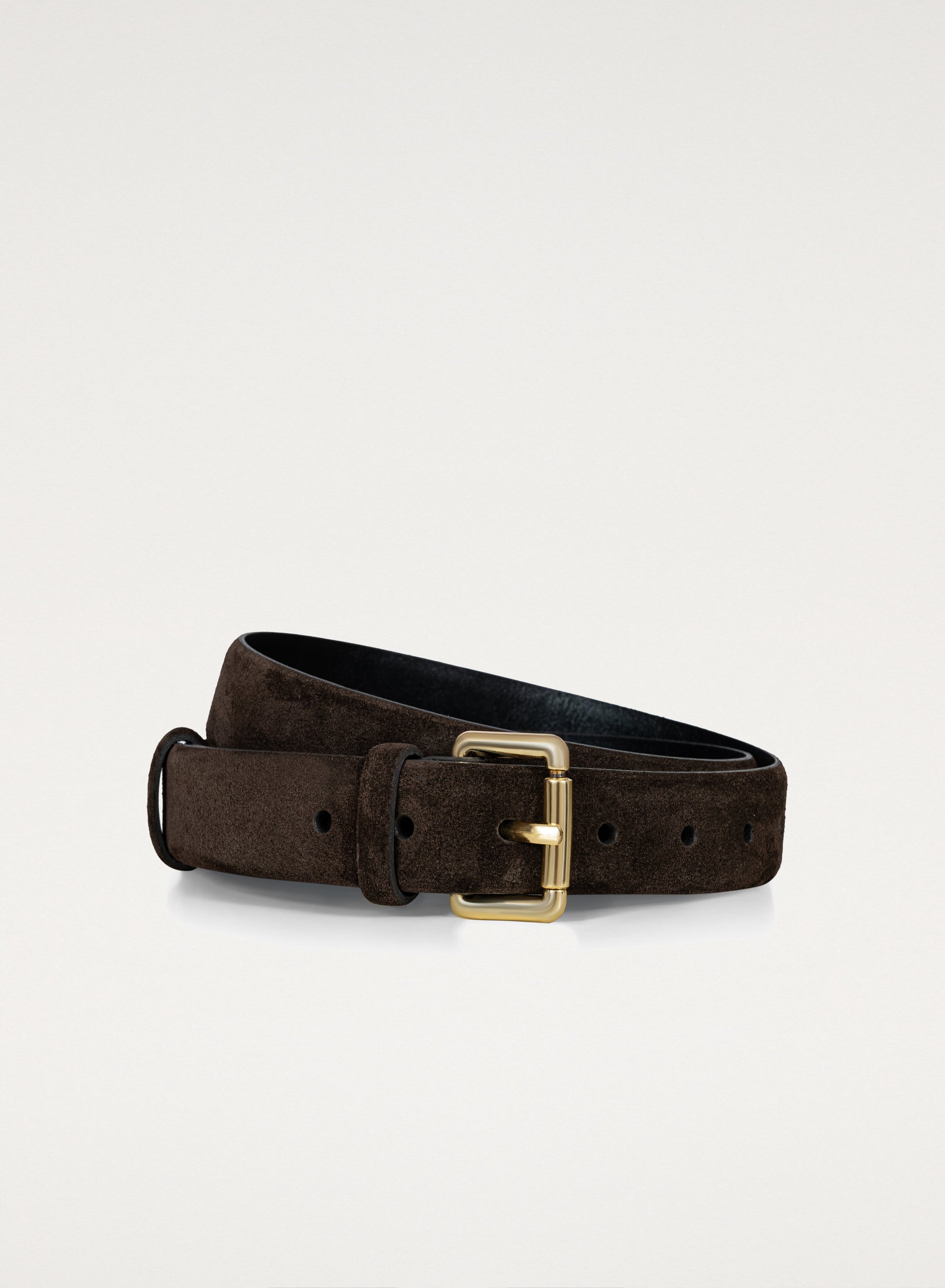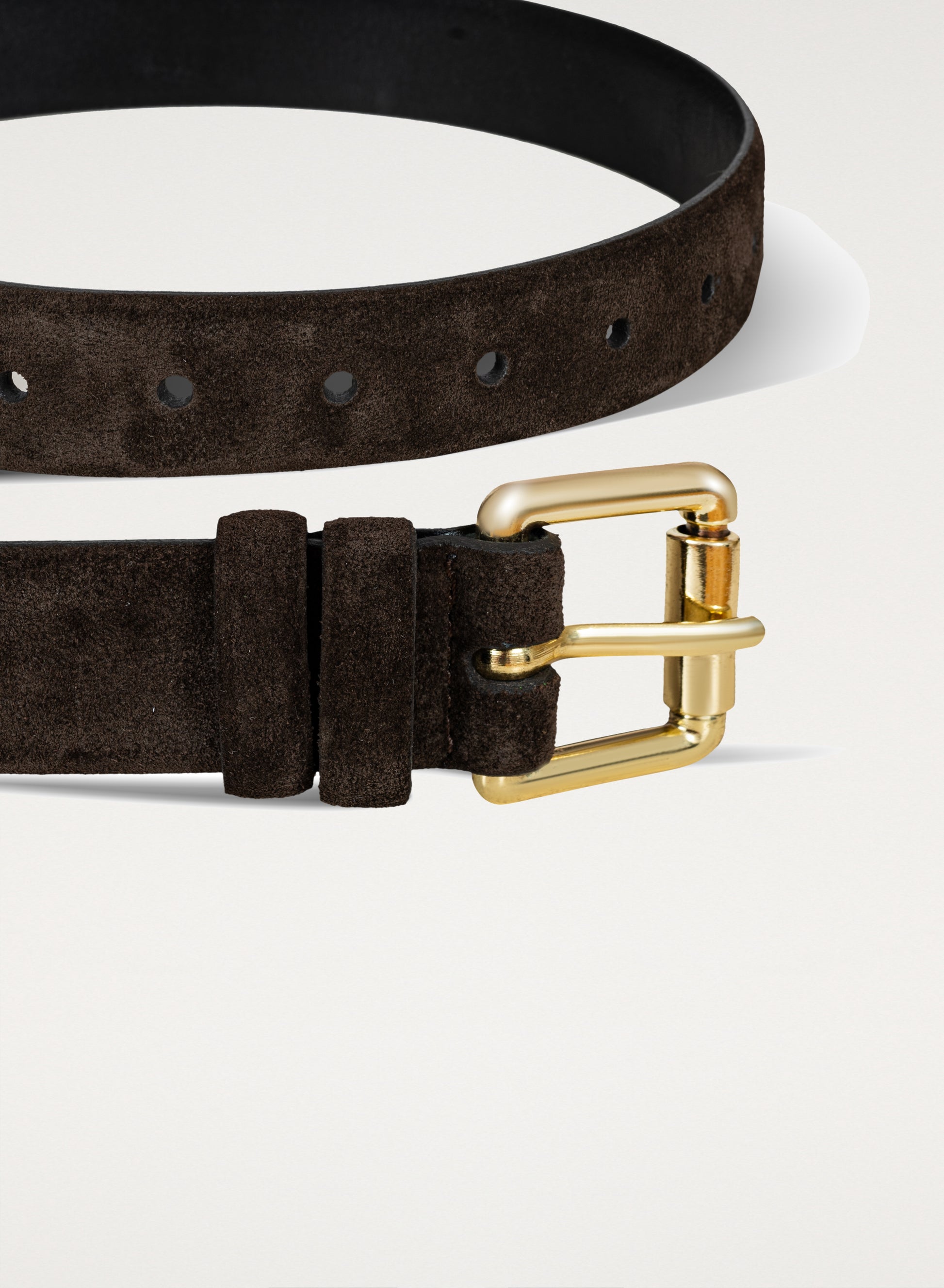Pasek z zamszu w brązowym kolorze ze złotą klamrą - Lirone