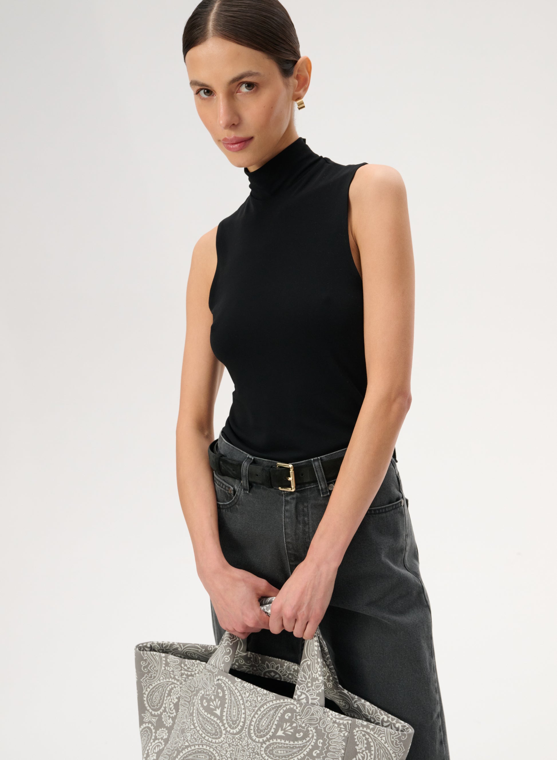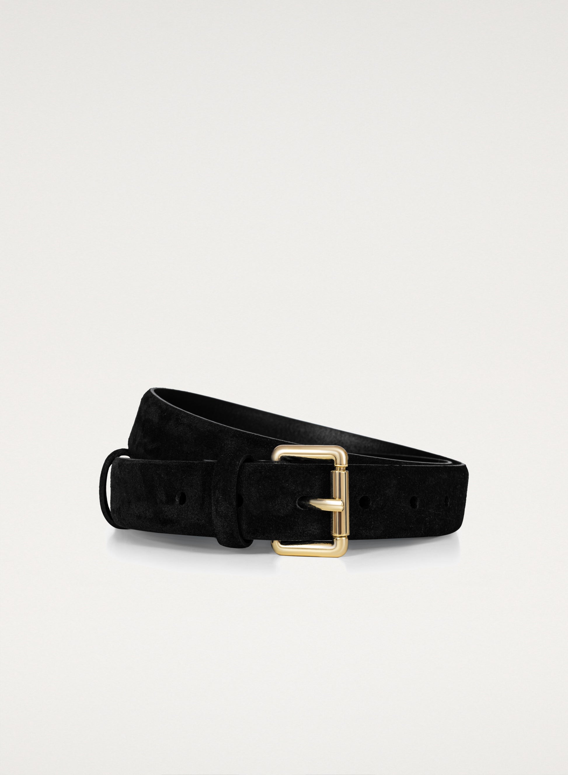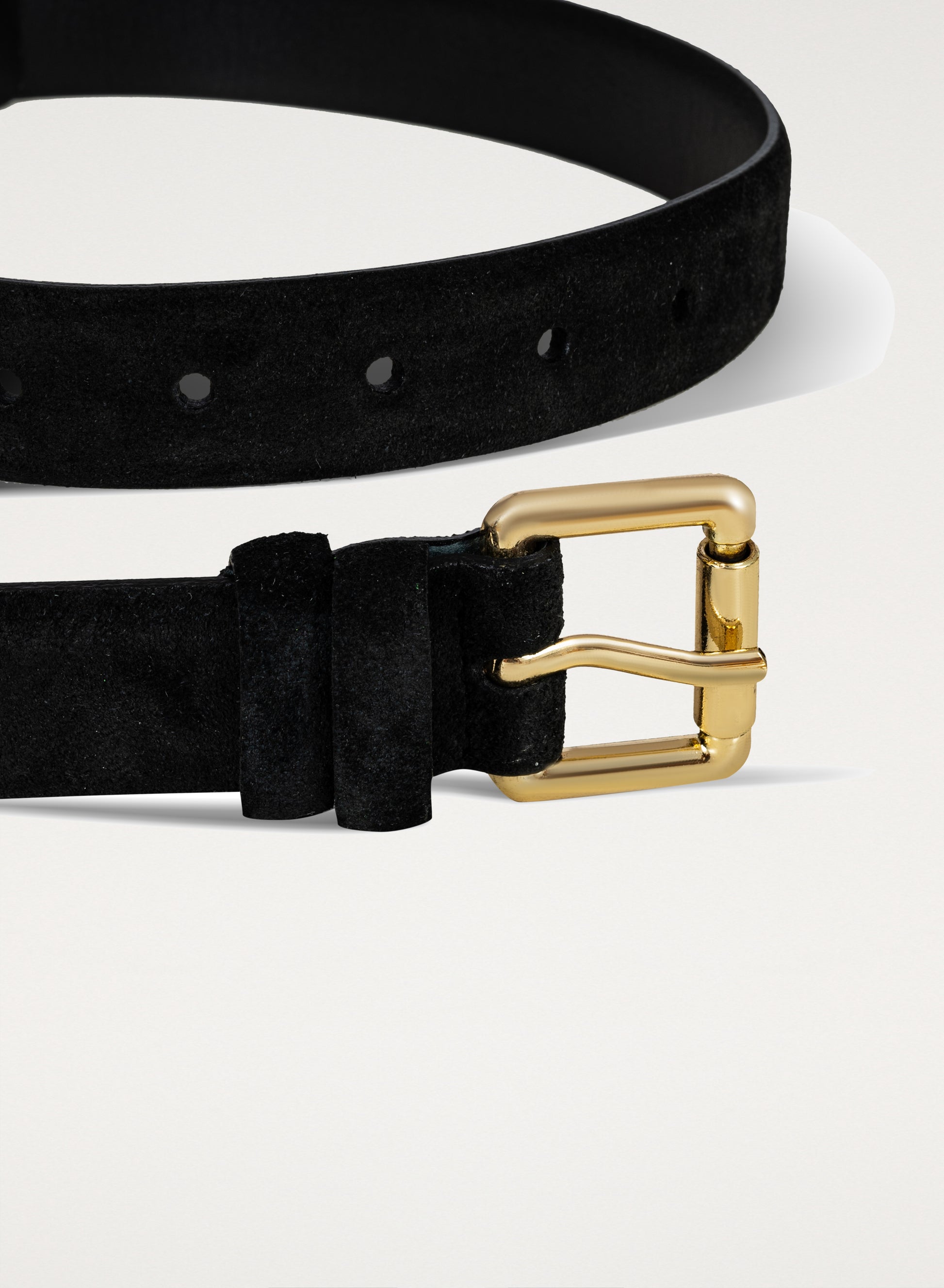 Pasek z zamszu w czarnym kolorze ze złotą klamrą - Lirone