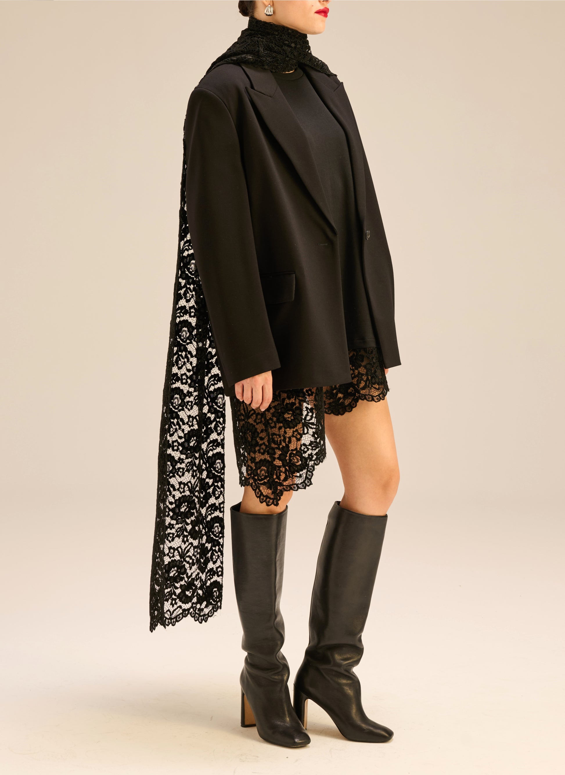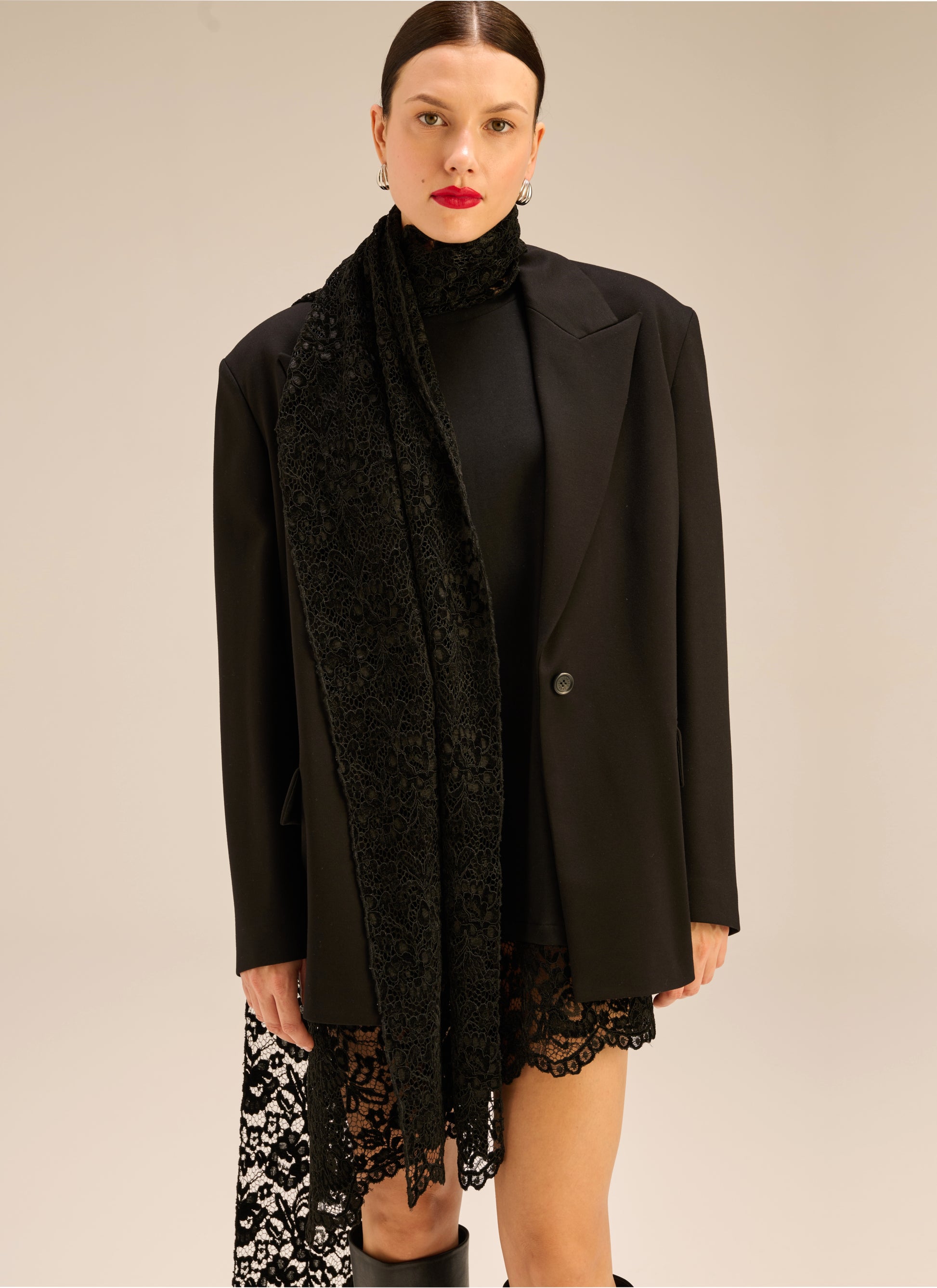 Szal z koronki w kolorze czarnym - Monica