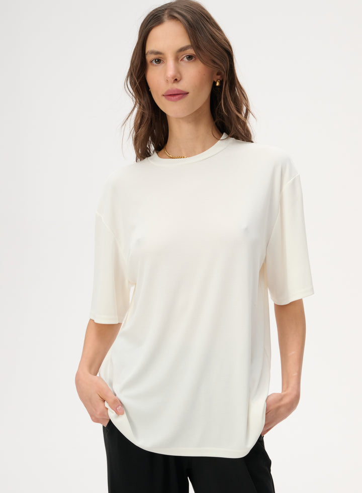 T-shirt z delikatnej dzianiny w kolorze ecru - Colin