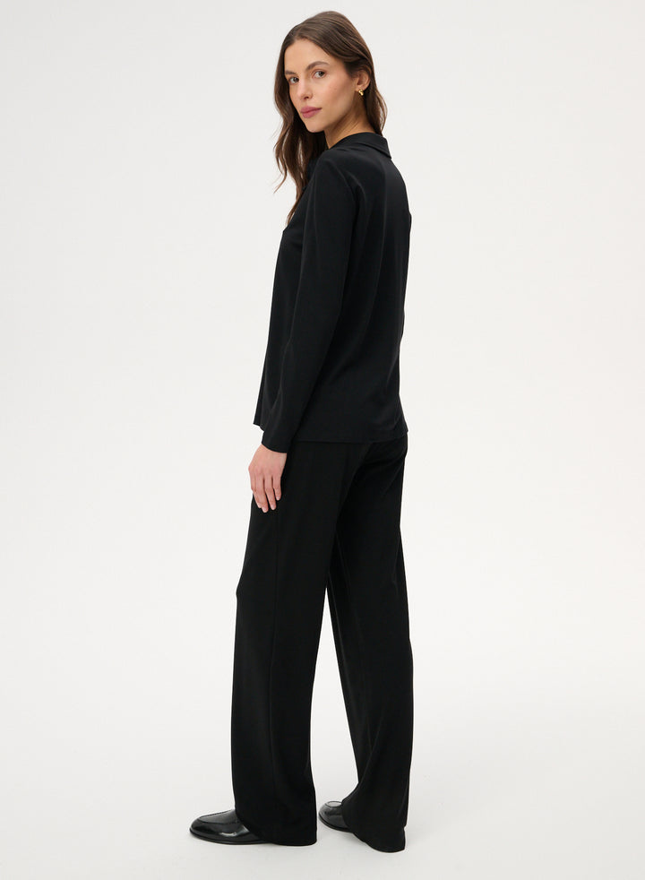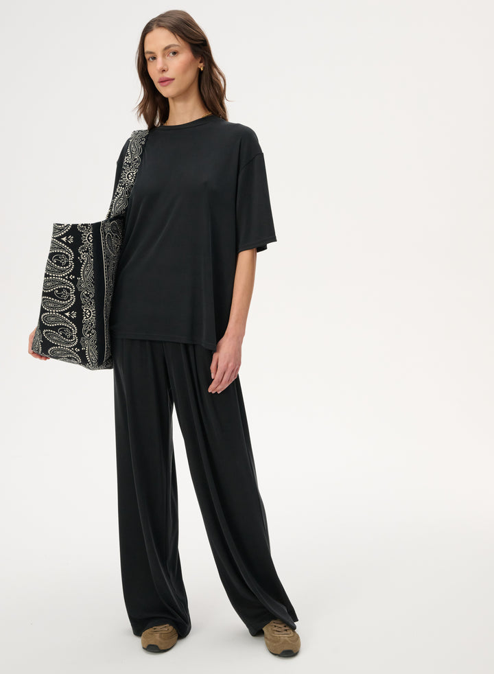 Spodnie z delikatnej dzianiny z szeroką nogawką w czarnym kolorze - Francesca