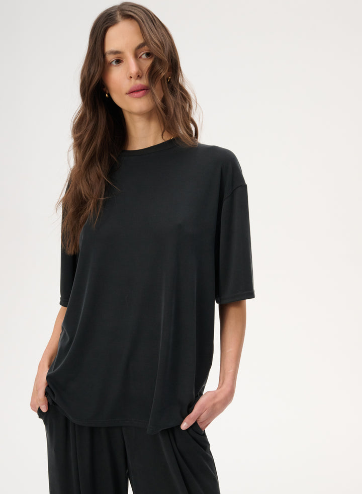 T-shirt z delikatnej dzianiny w kolorze czarnym - Colin