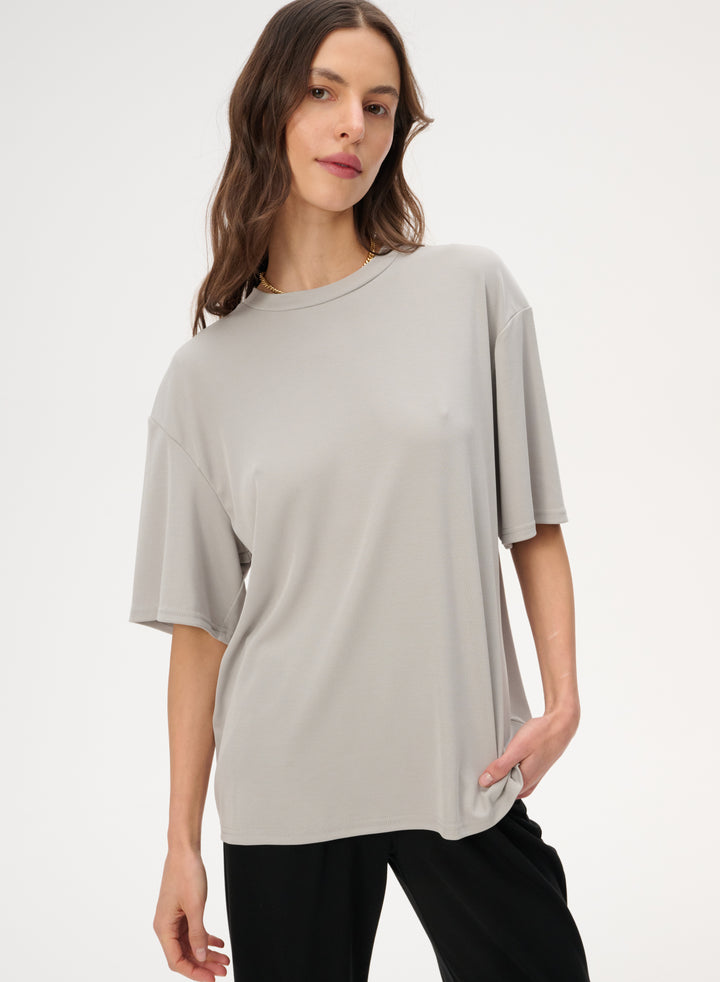 T-shirt z delikatnej dzianiny w kolorze szarym - Colin