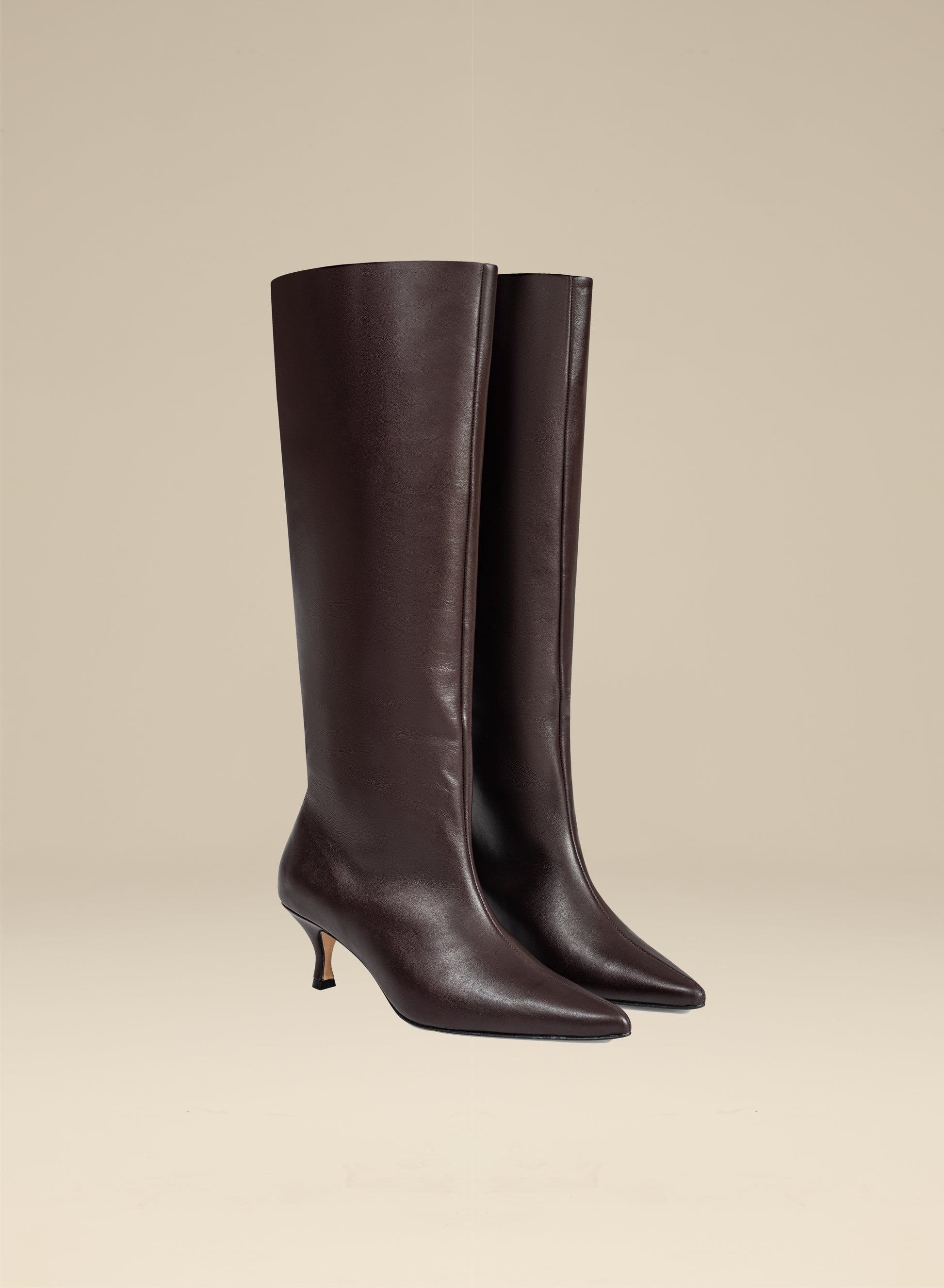 Kozaki ze skóry cielęcej na niskim obcasie - Pine