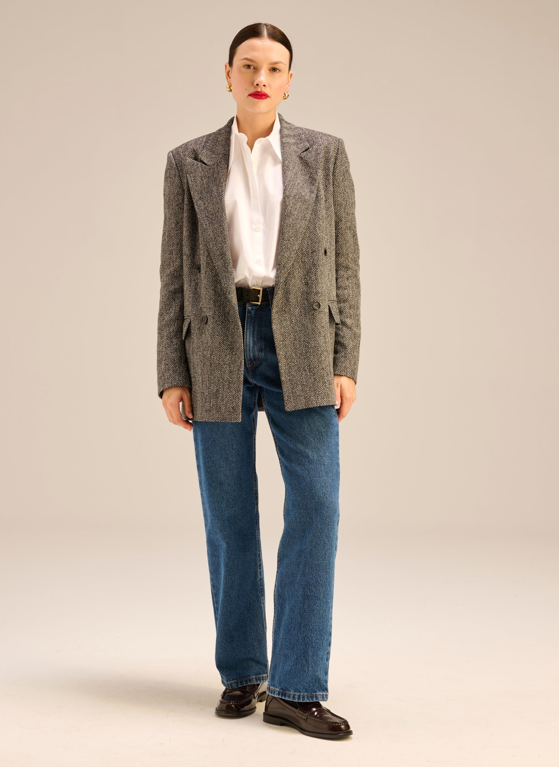 Marynarka o prostym kroju z dwurzędowym zapięciem we wzór jodły - Felix