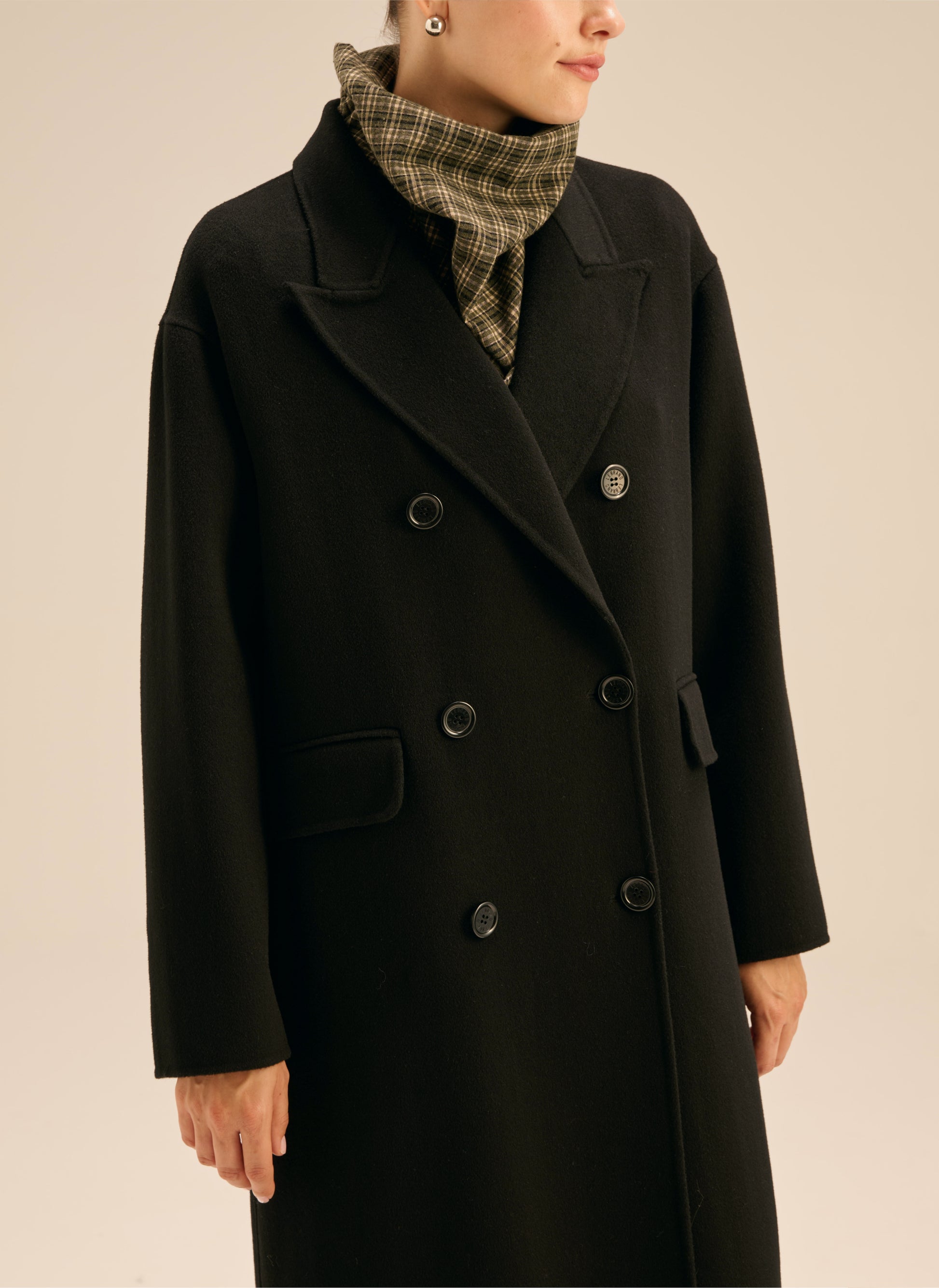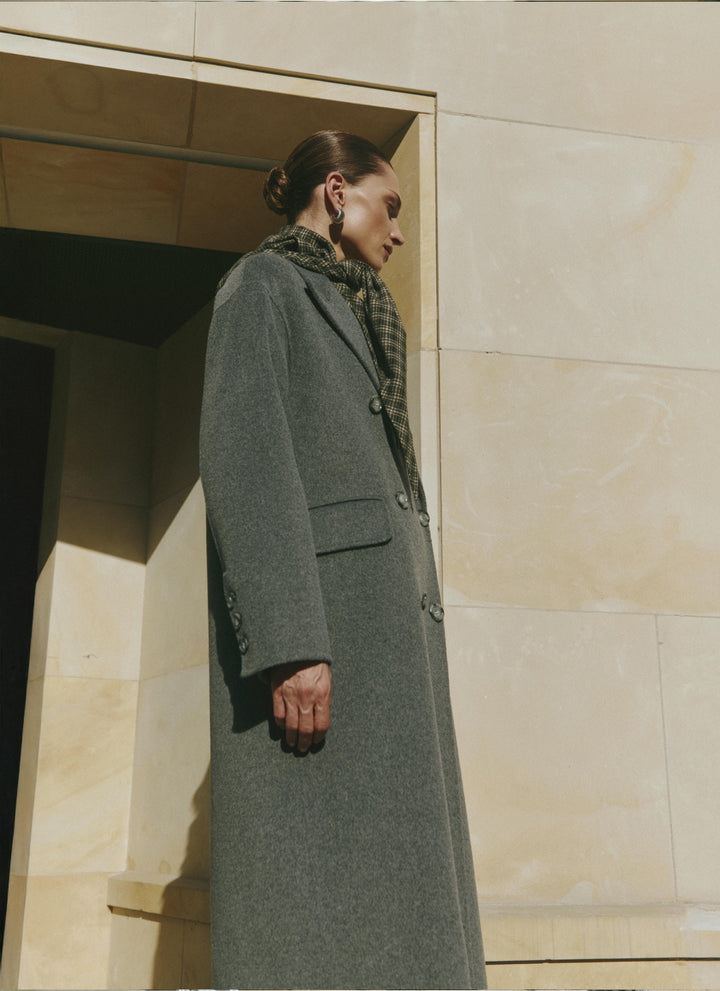 Płaszcz maxi z wełny dziewiczej z dwurzędowym zapięciem - Joel