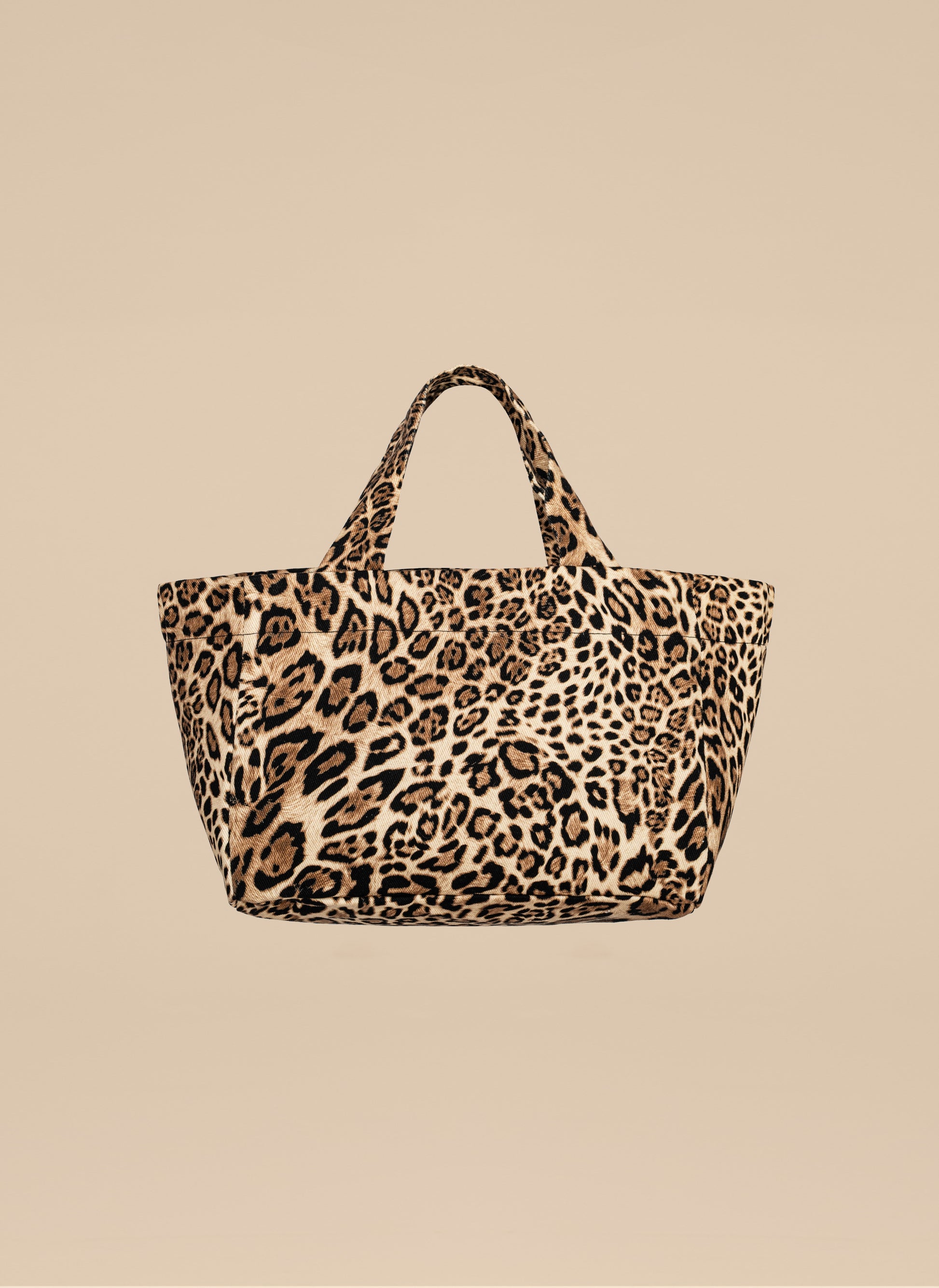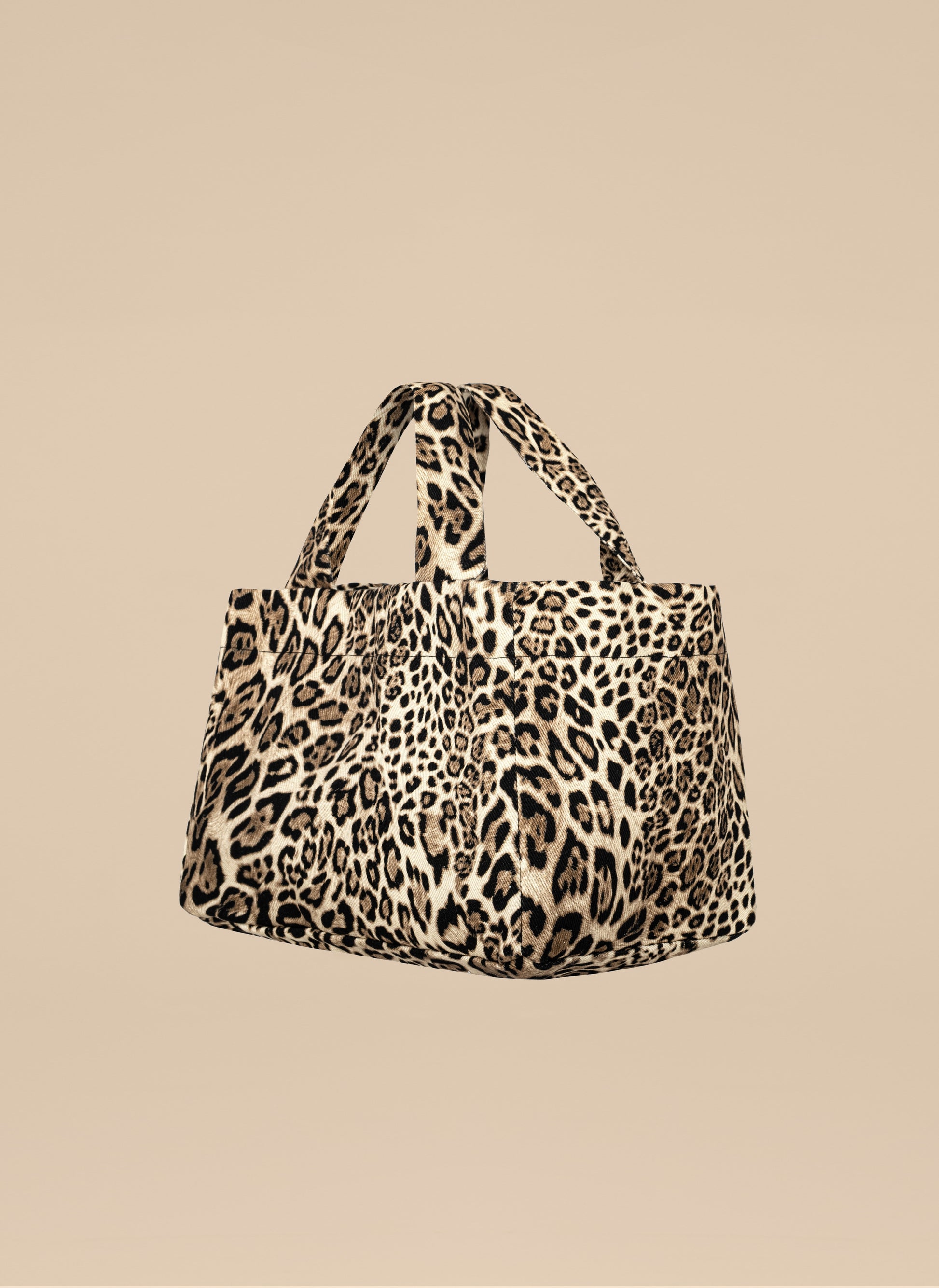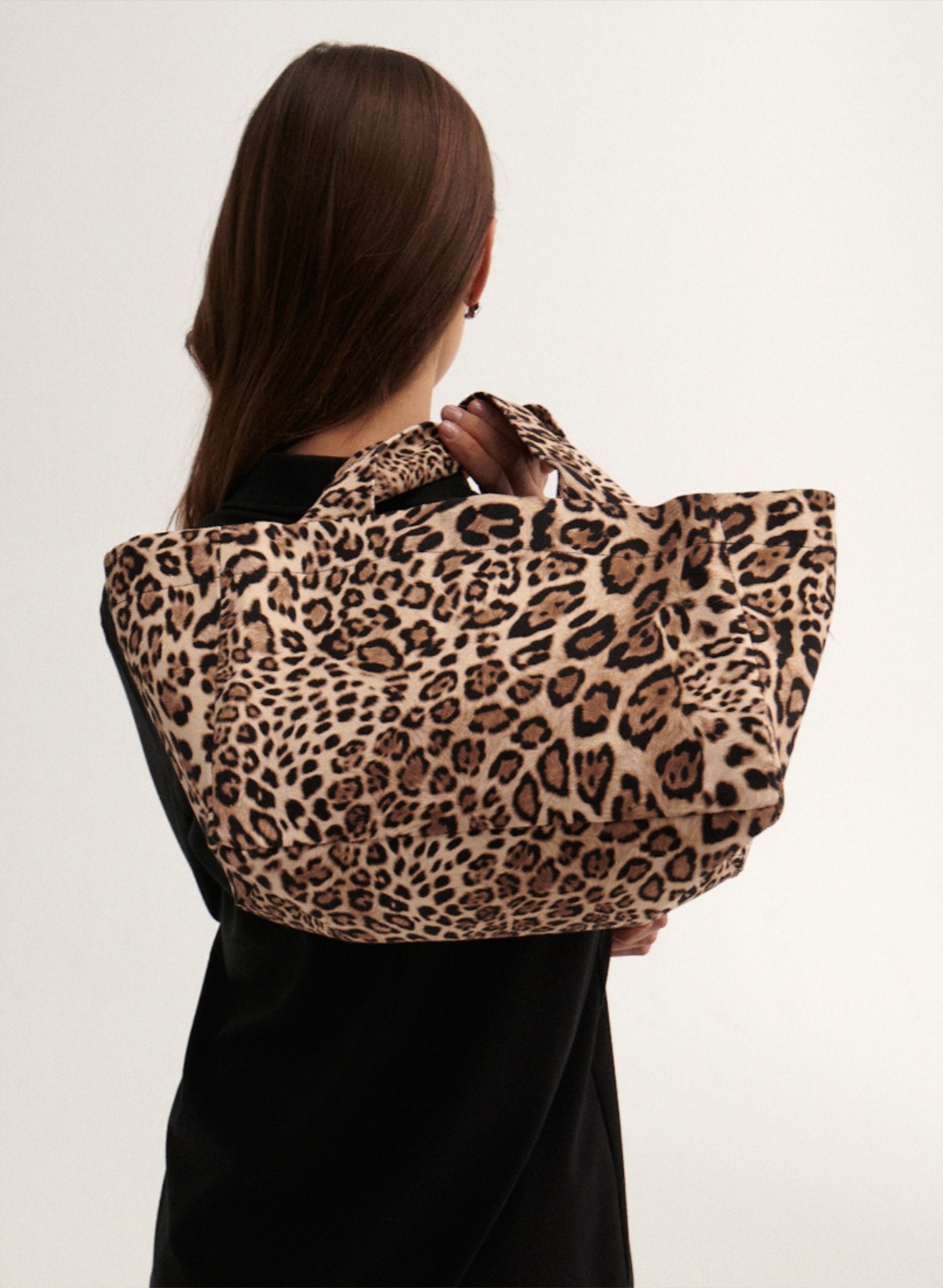 Mała torba typu mini shopper wykonana z grubego bawełnianego płótna z nadrukiem inspirowanym motywem zwierzęcym. Bez zapięcia, posiada jedną wewnętrzną kieszonkę.