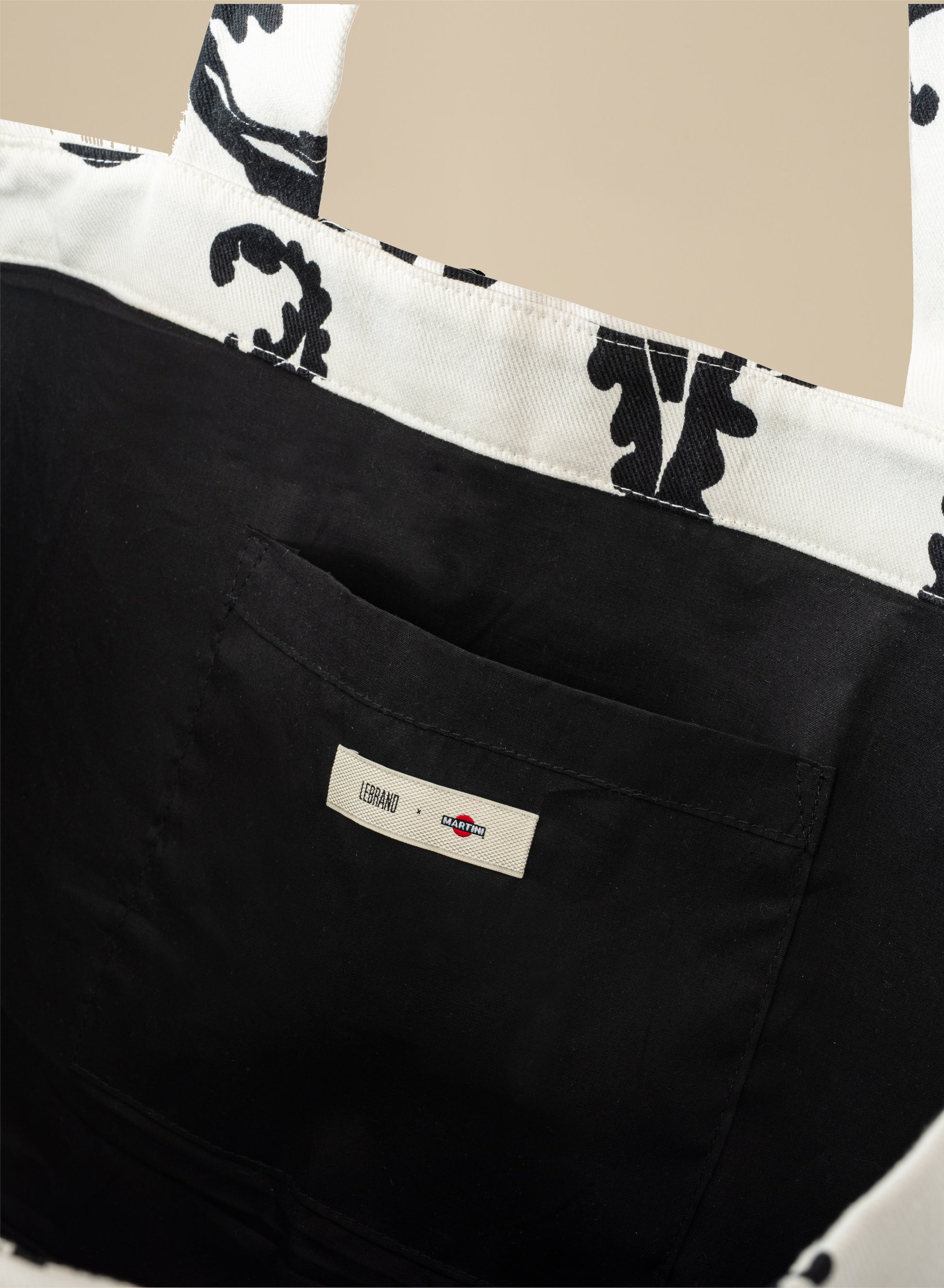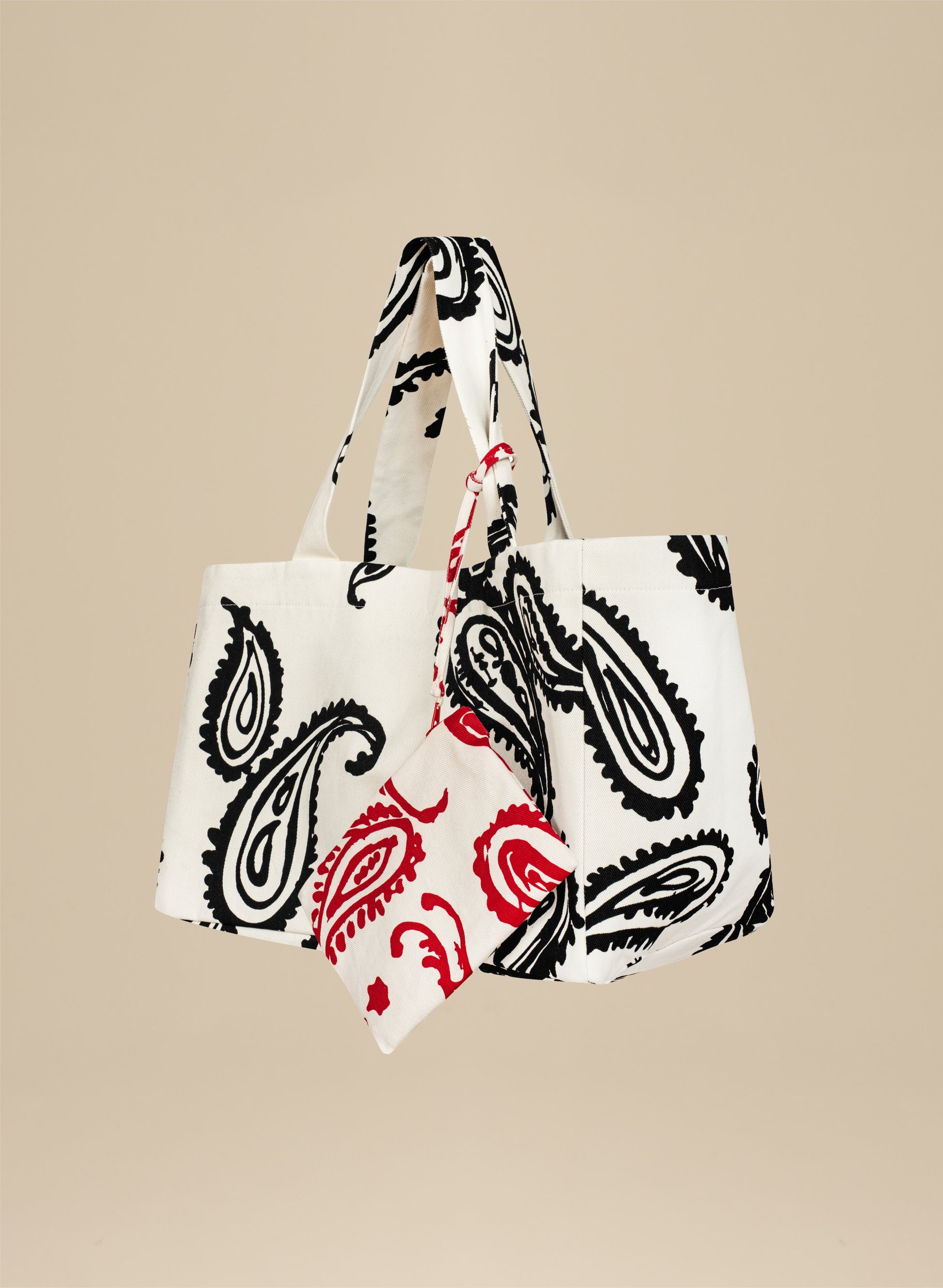 Torba typu shopper wykonana z grubego bawełnianego płótna z nadrukiem z motywem bandany. Bez zapięcia, posiada jedną wewnętrzną kieszonkę.
