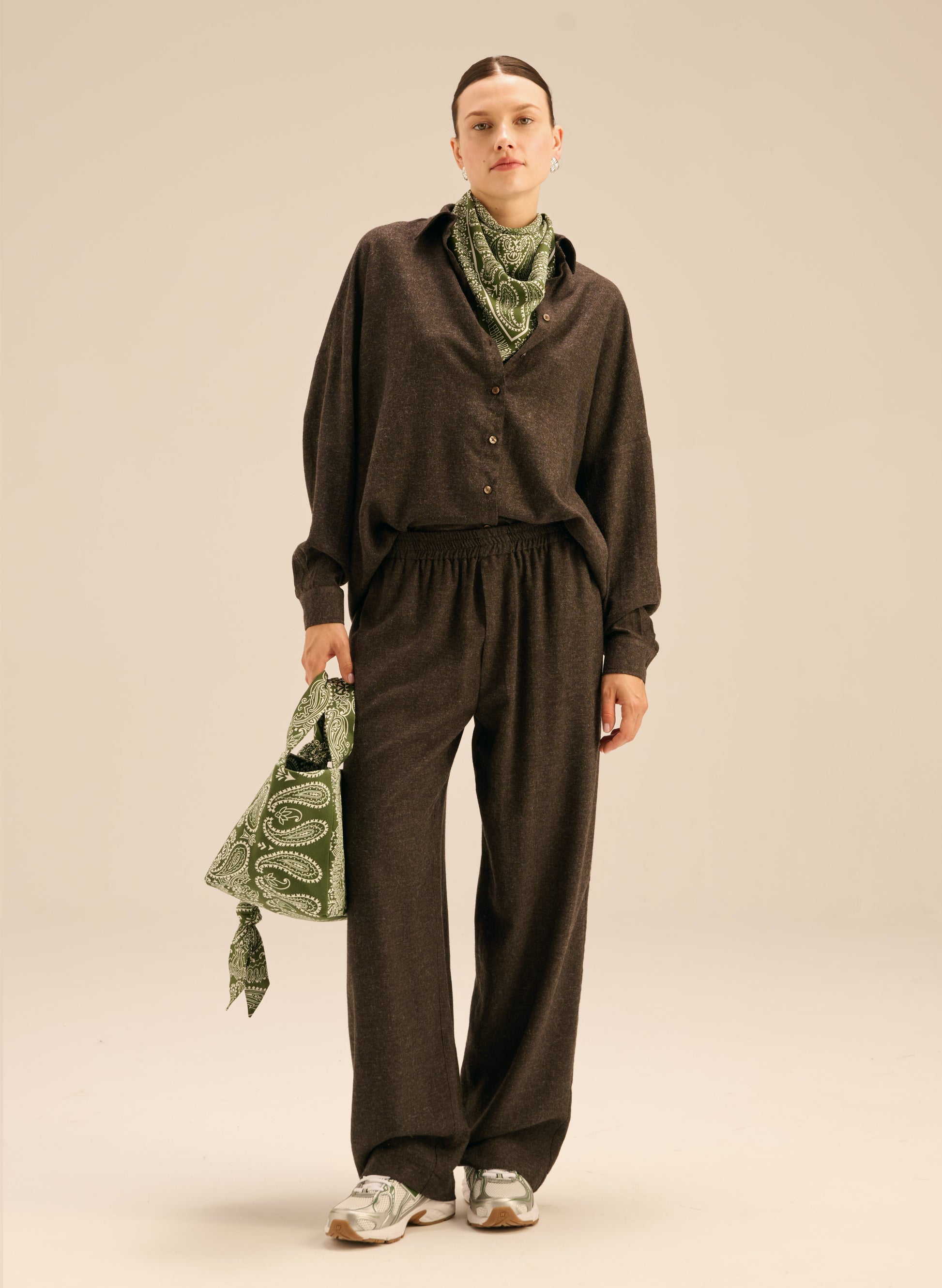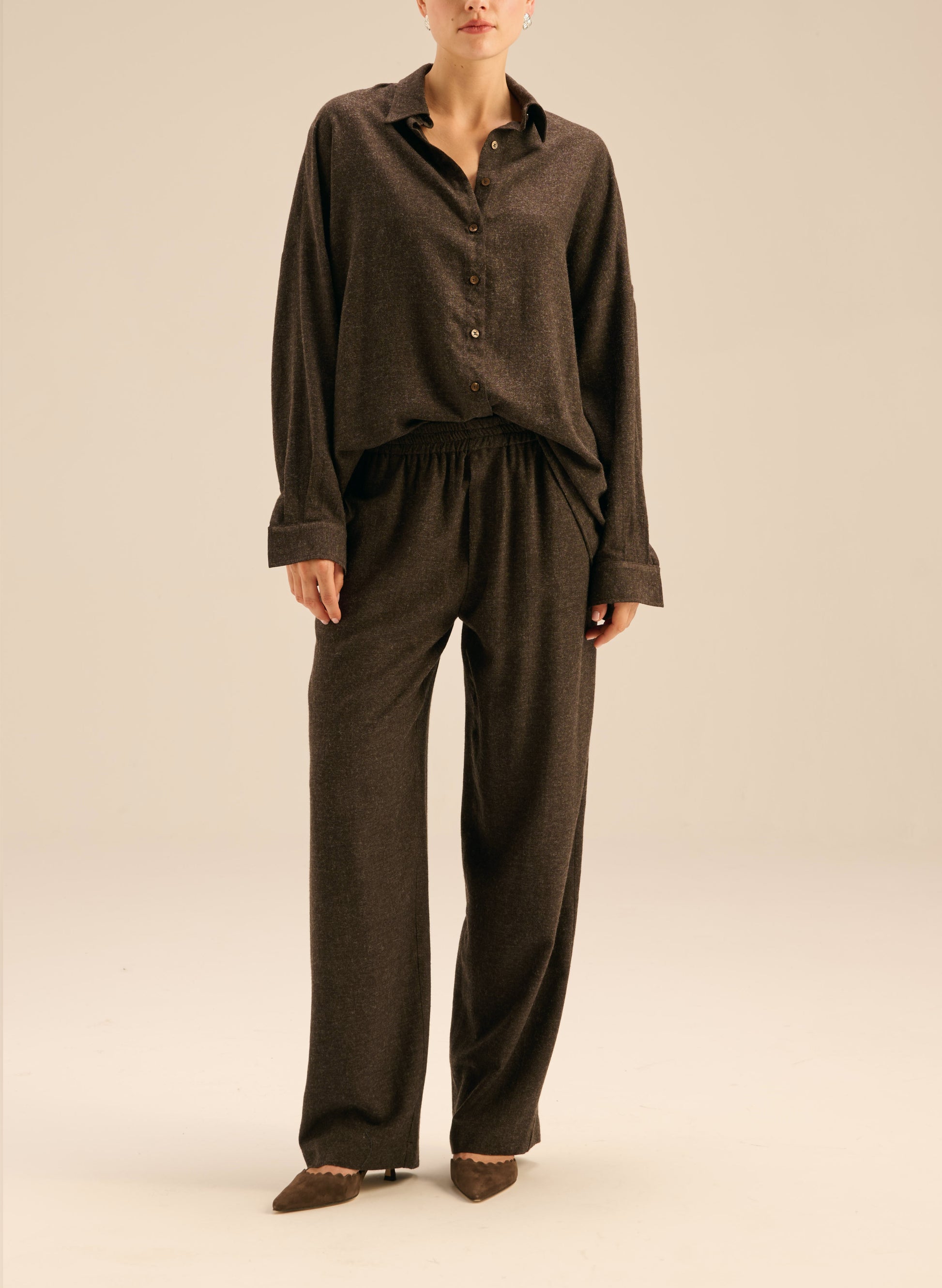 Spodnie z miękkiej tkaniny z szeroką nogawką w brązowym kolorze - Franco