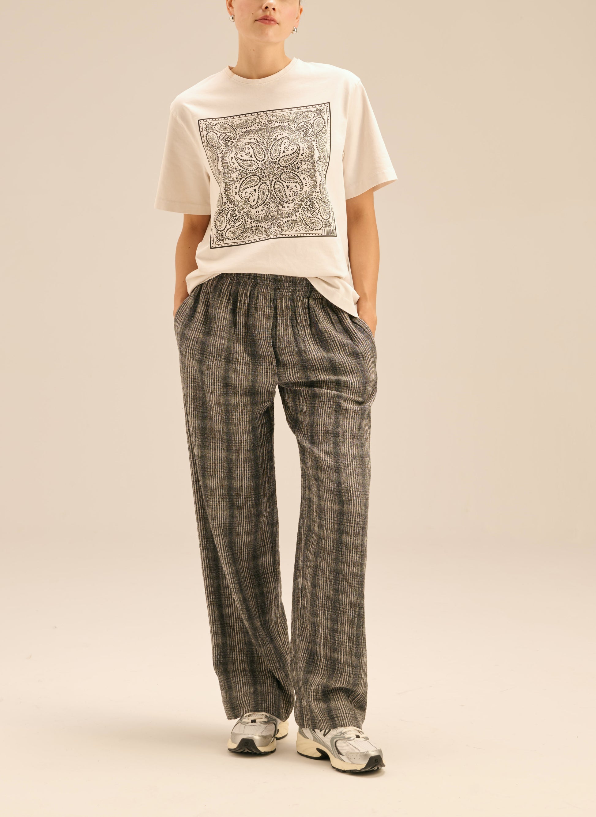 Spodnie z elastycznym pasem w kraciasty wzór - Sammy