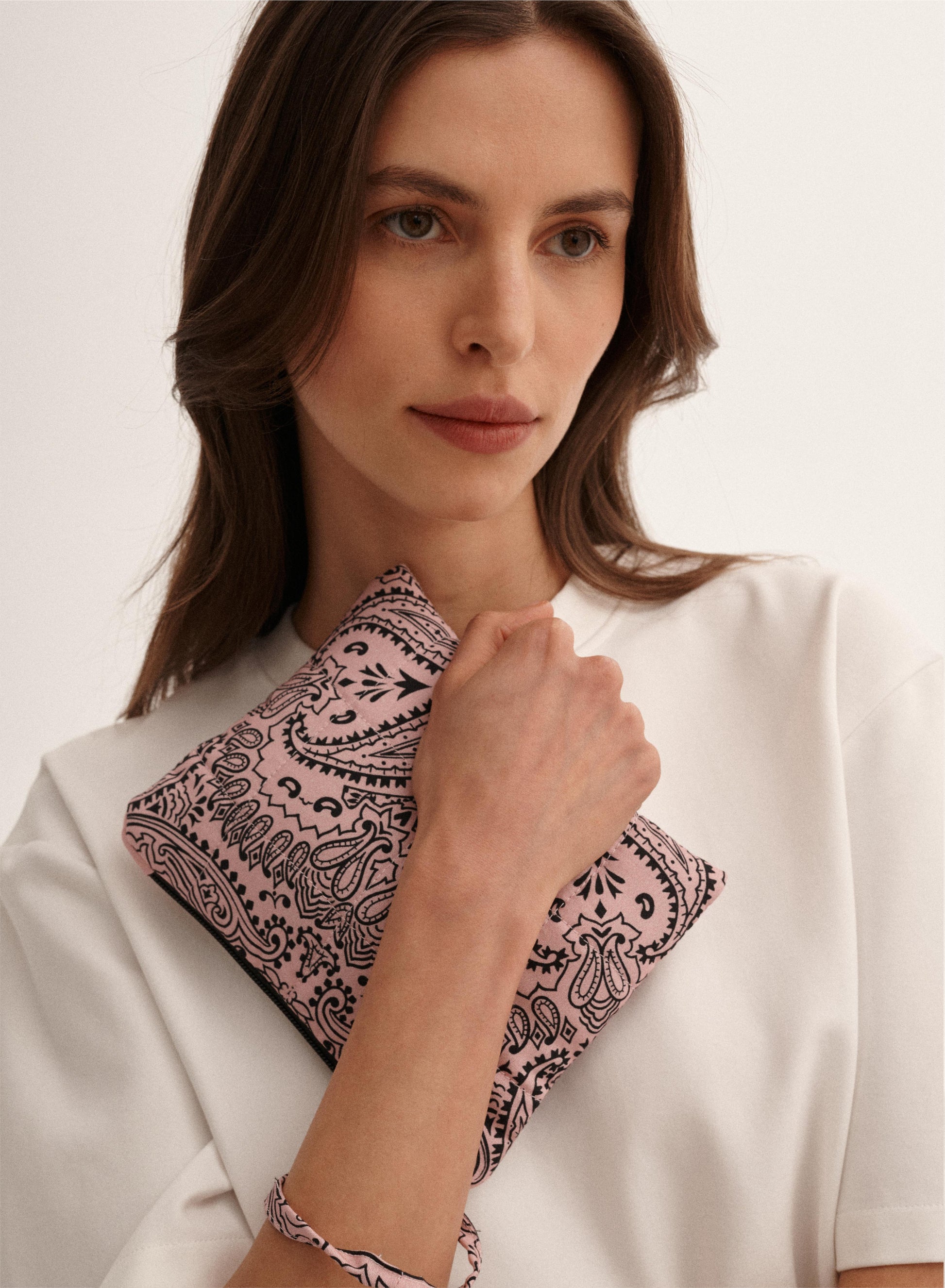 Zestaw zawierający kosmetyczkę i mini kosmetyczkę. Wykonane z miękkiej wiskozy, z nadrukiem w charakterystyczny wzór. Zapinane na zamek, posiadają małą kieszonkę wewnątrz. W przypadku ewentualnego zwrotu zestaw musi zostać zwrócony w całości.