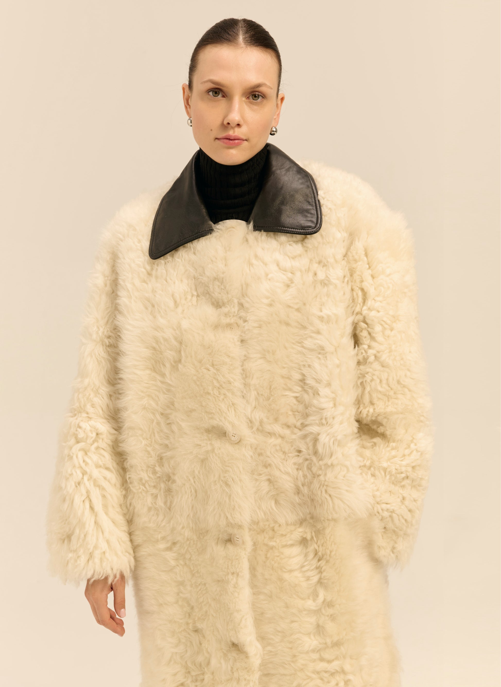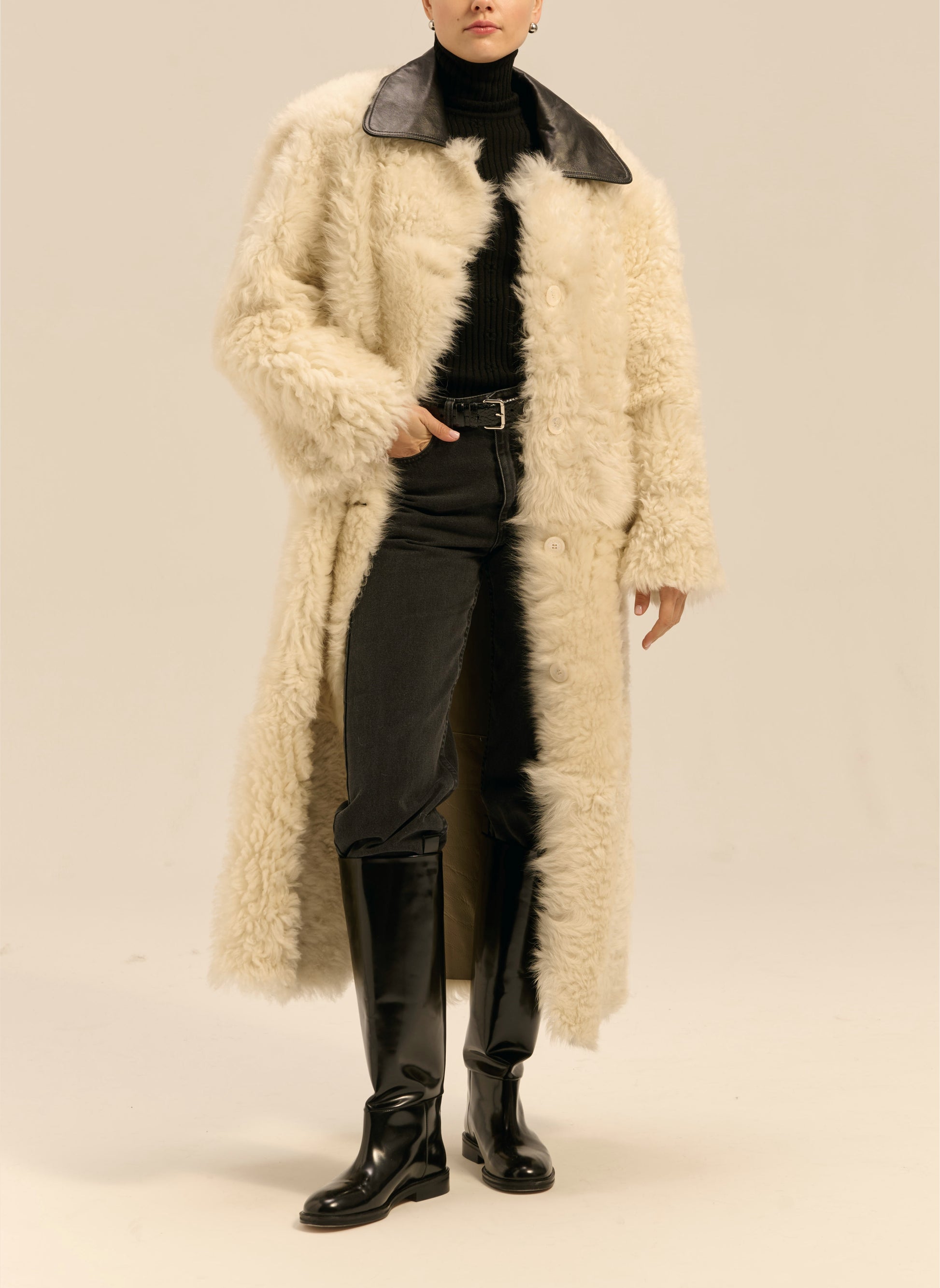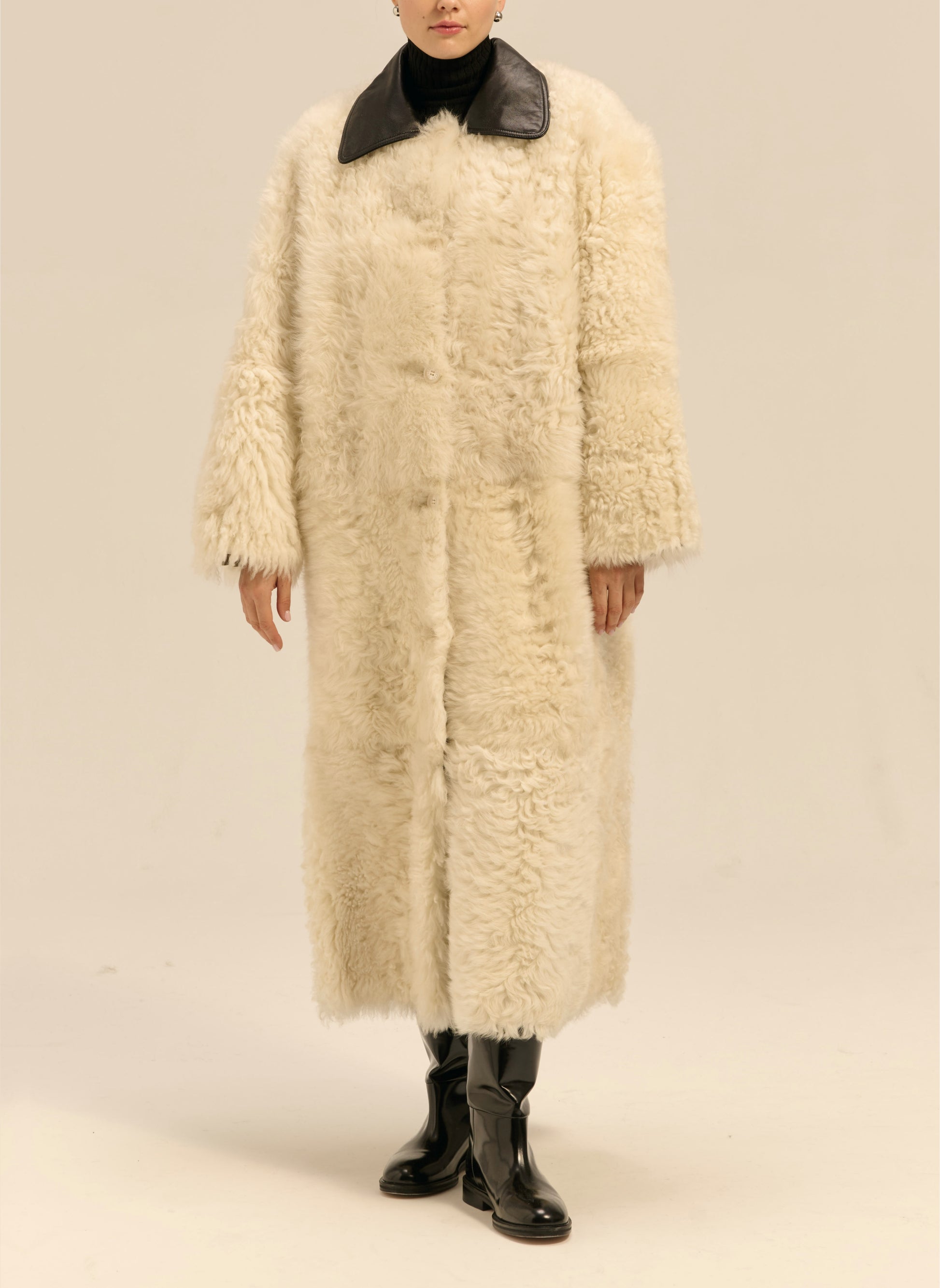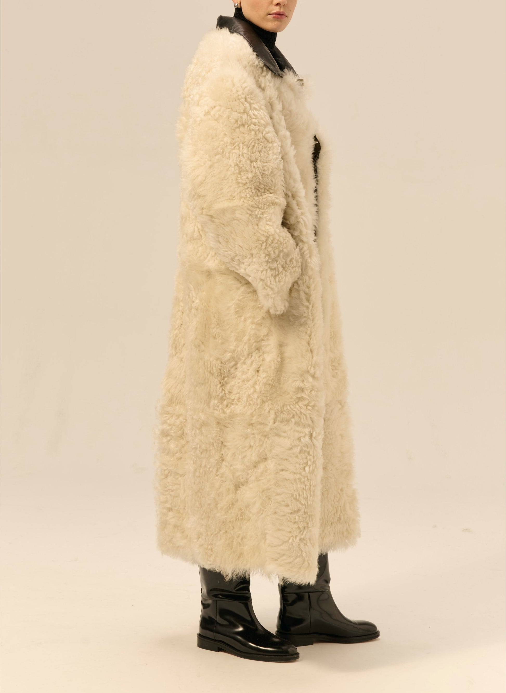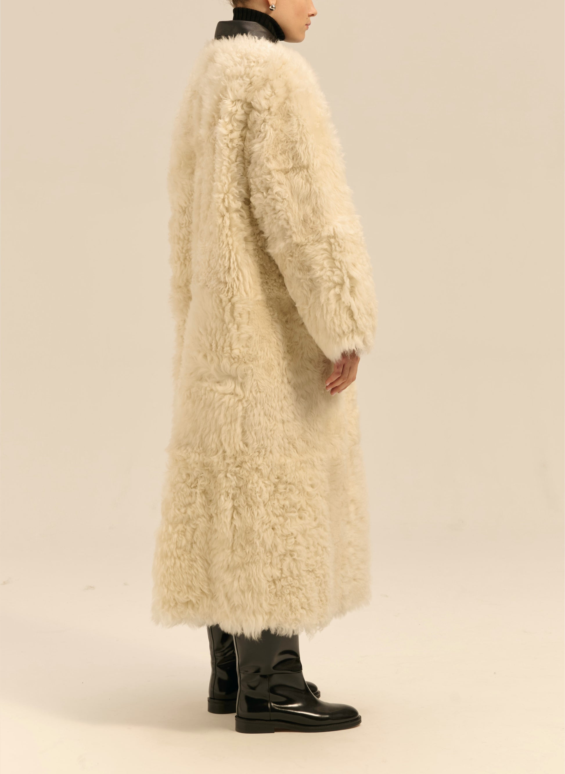 Kożuch maxi z wełny owczej merino z kręconym włosem o pudełkowym kroju - Perry