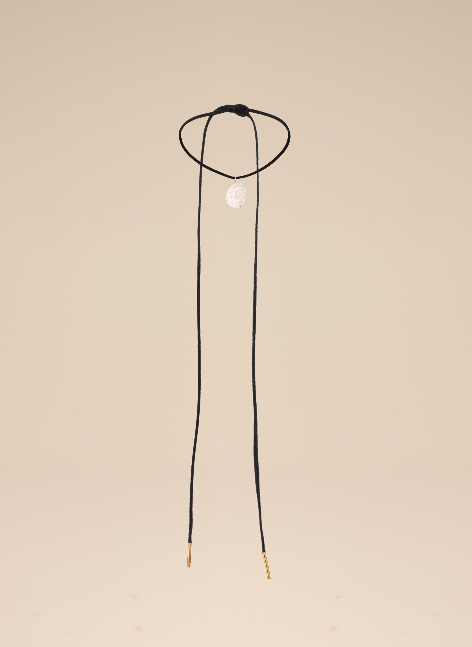 Naszyjnik w stylu choker, o regulowanej długości z ozodbną perłą o nieregularnym kształcie.