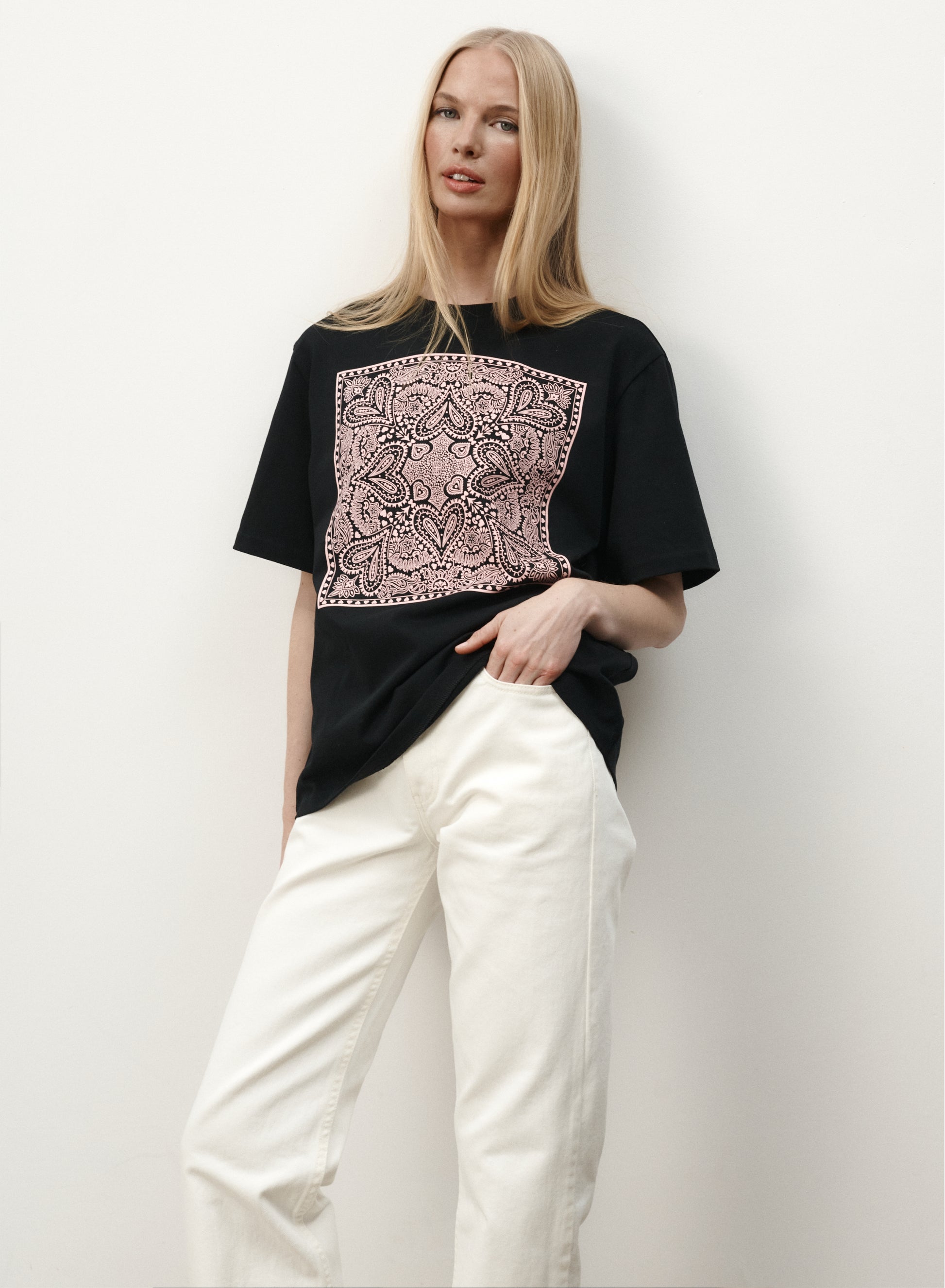 T-shirt z bawełny w kolorze czarnym z nadrukiem - Valentine