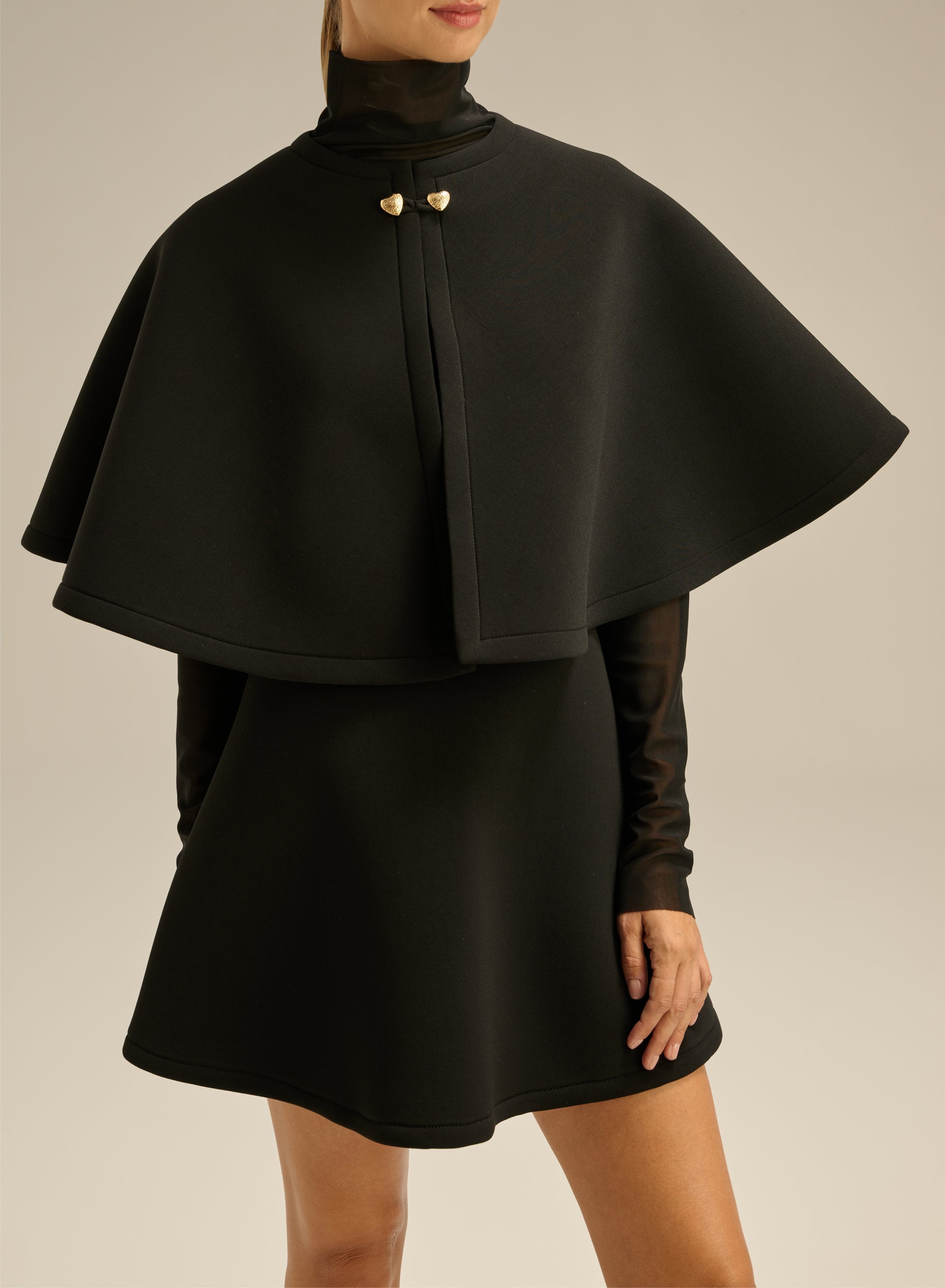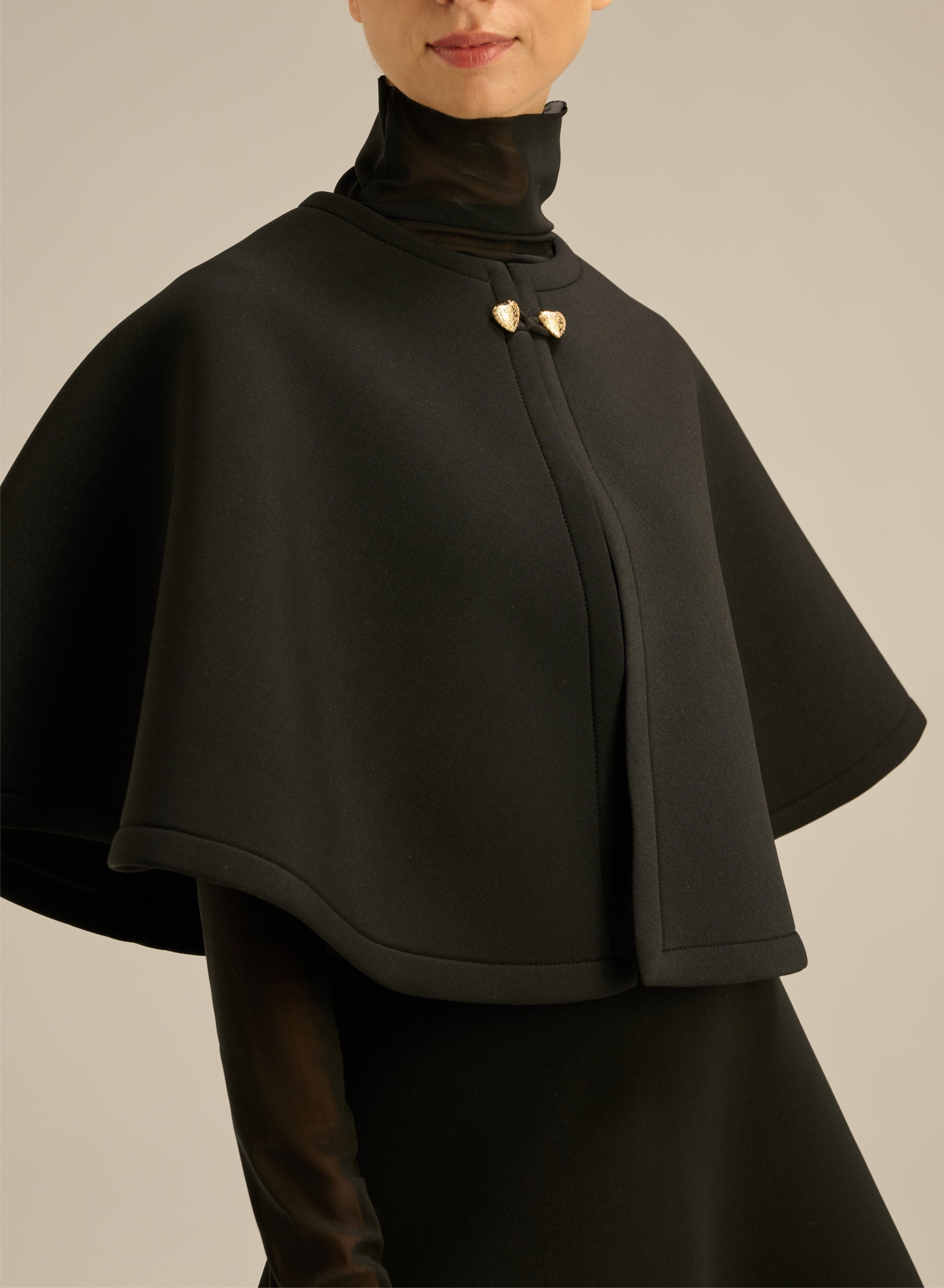 Krótka peleryna wykonana z lekkiej piankowej tkaniny. Posiada ozodbne zapięcie w kształcie serduszek.