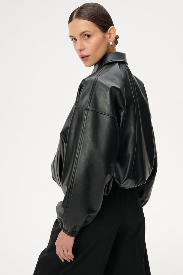 Płaszcz maxi ze skóry o kroju oversize czarny - Este