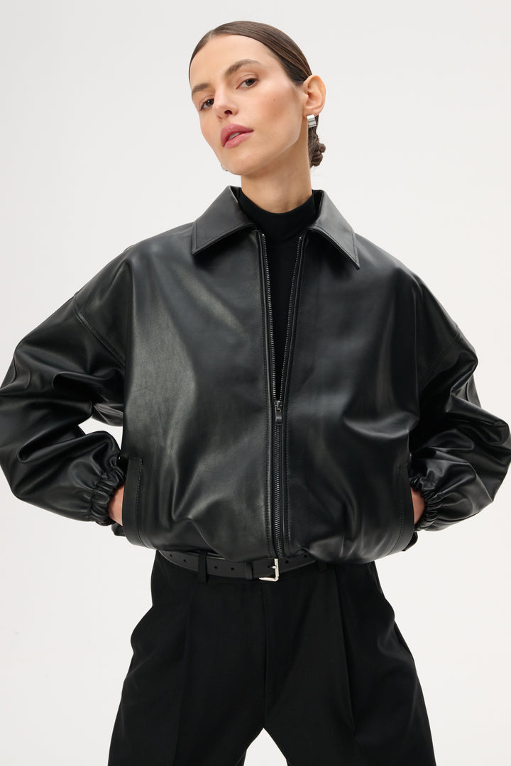 Płaszcz midi ze skóry o pudełkowym kroju czarny - Jose