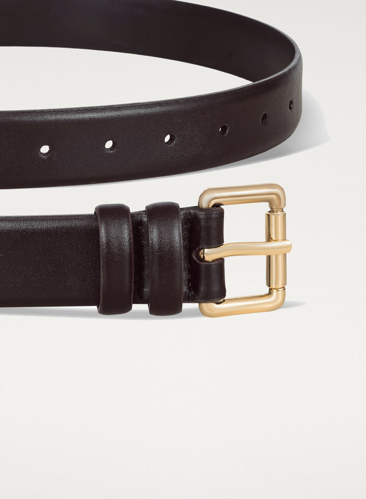 Pasek ze skóry w kolorze burgundowym ze złotą klamrą - Lirone