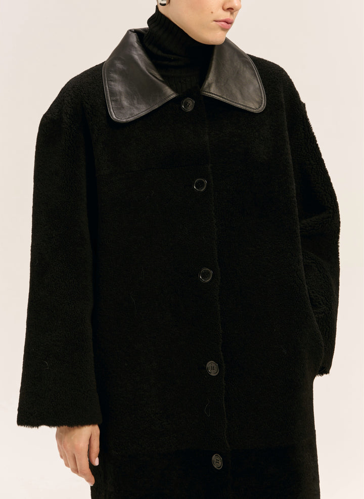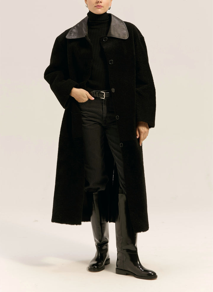 Kożuch maxi z wełny owczej z krótkim włosem o pudełkowym kroju - Molly