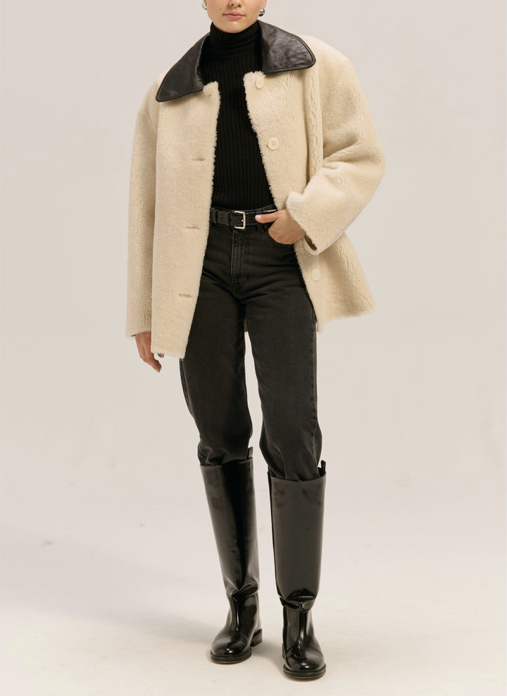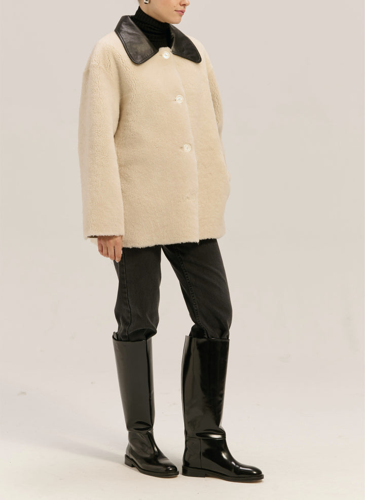 Kożuch z wełny z krótkim włosem o pudełkowym kroju - Molly