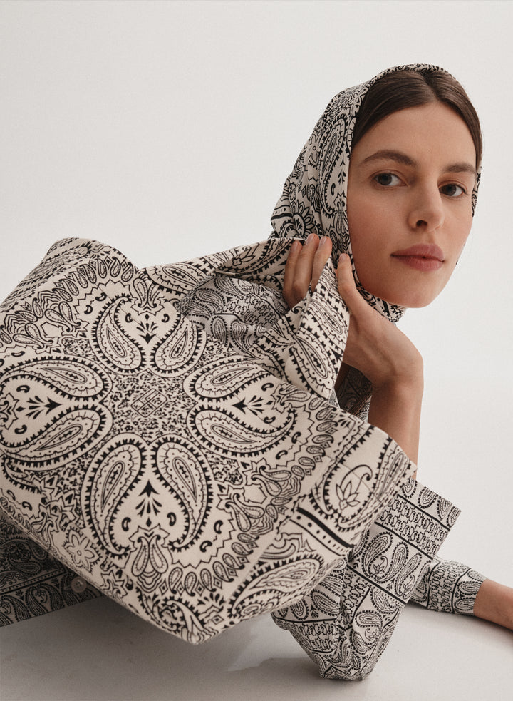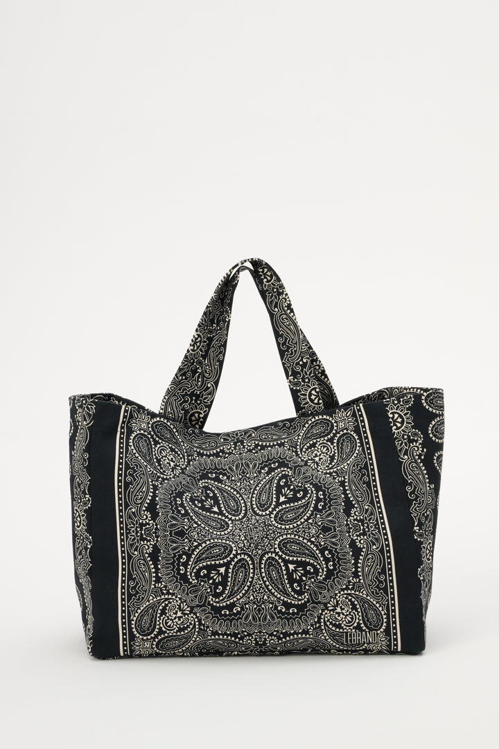 Torba typu shopper z bawełny czarna we wzór - Capri