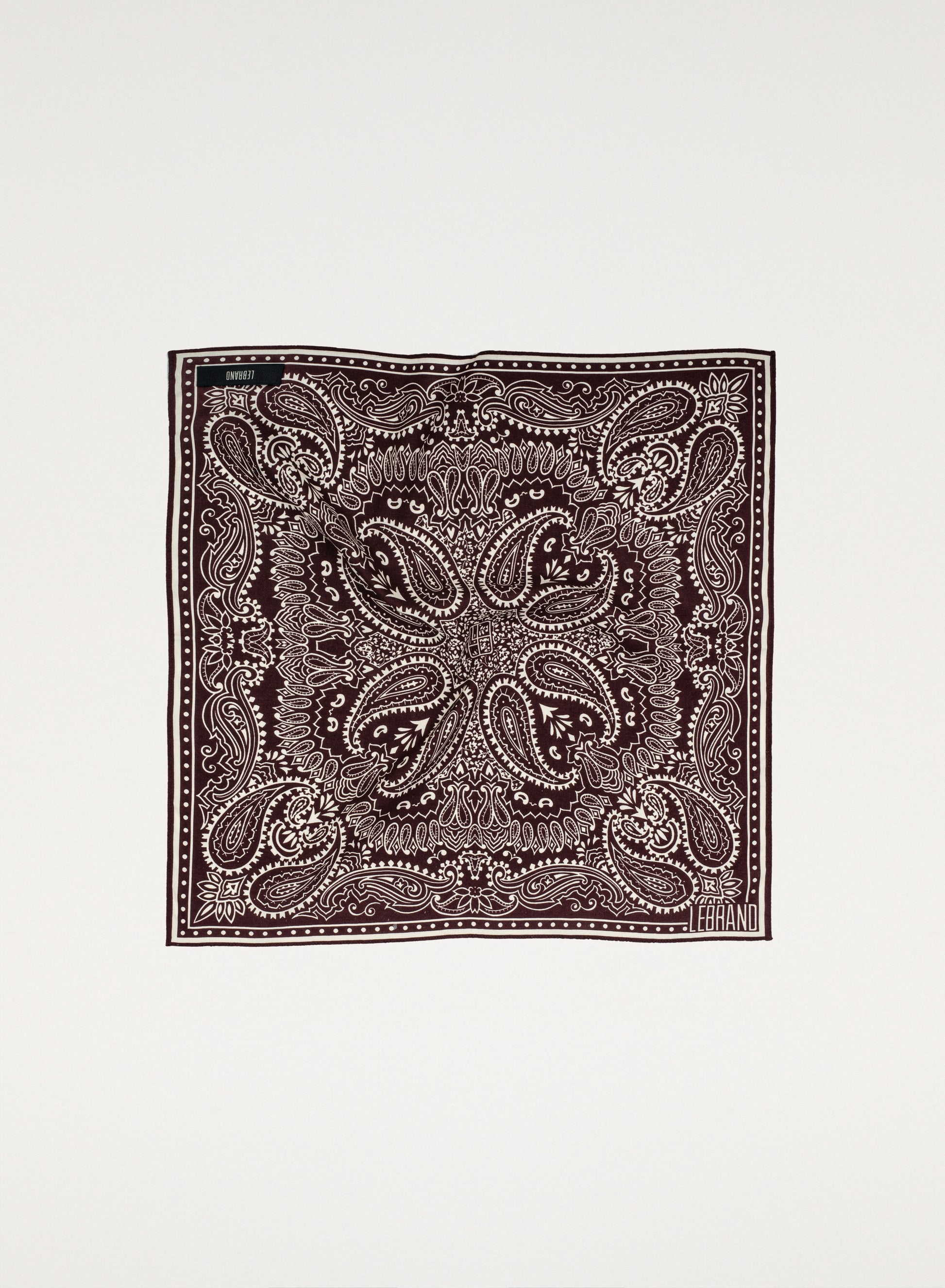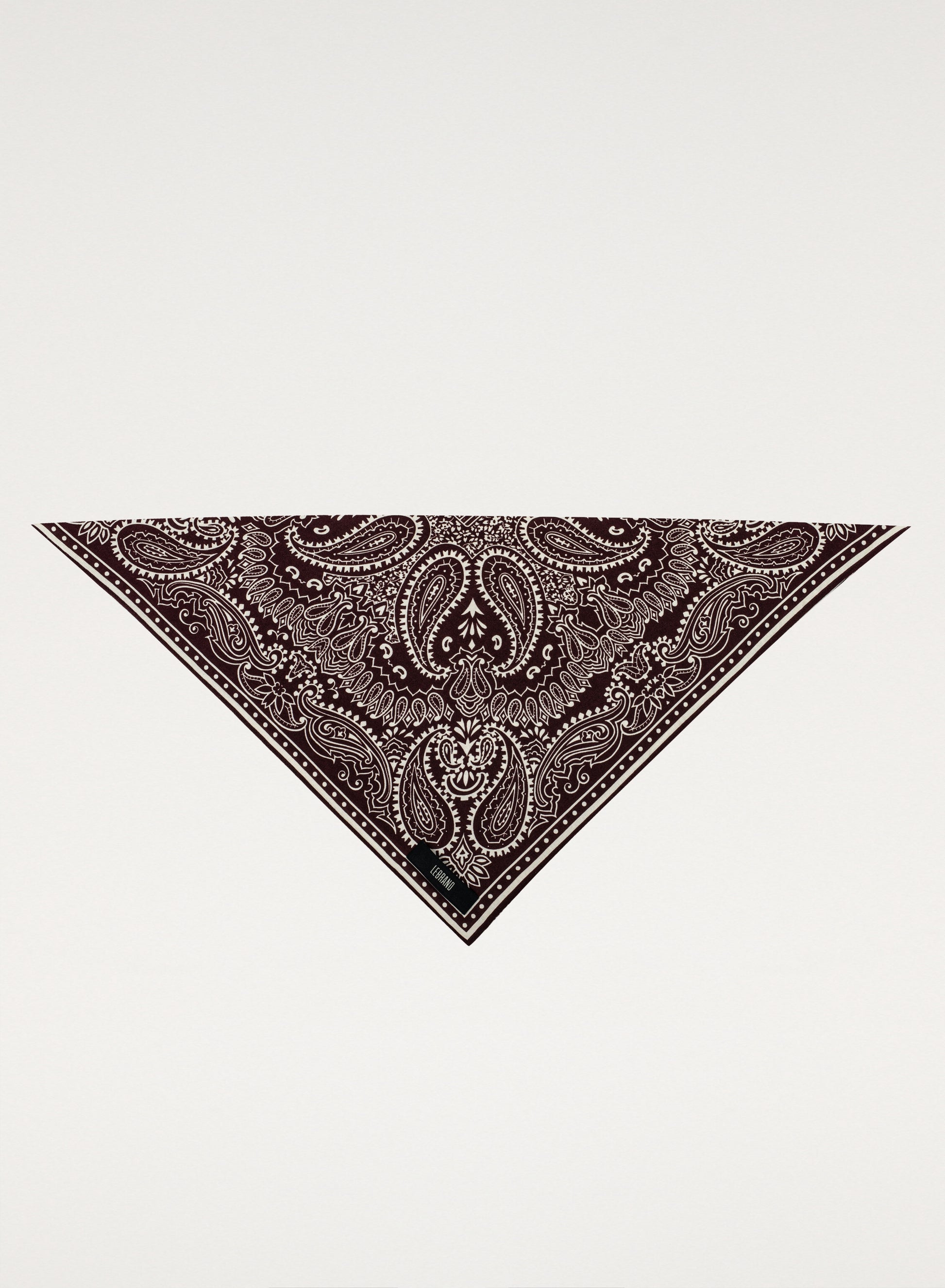 Uniwersalna bandana w rozmiarze mini, ręcznie wykończona, wykonana z miękkiej wiskozy w kolorze burgundowym i ecru.