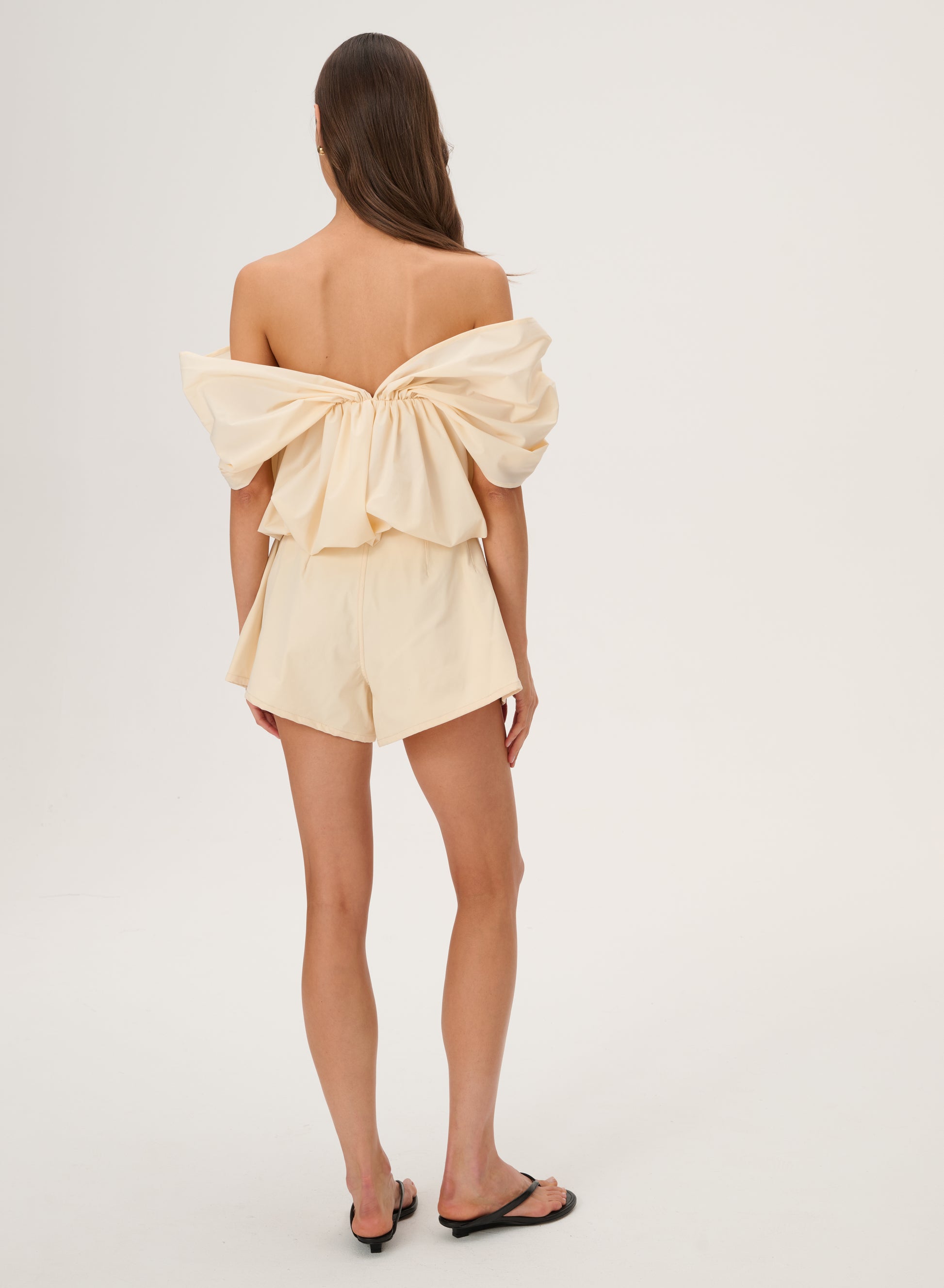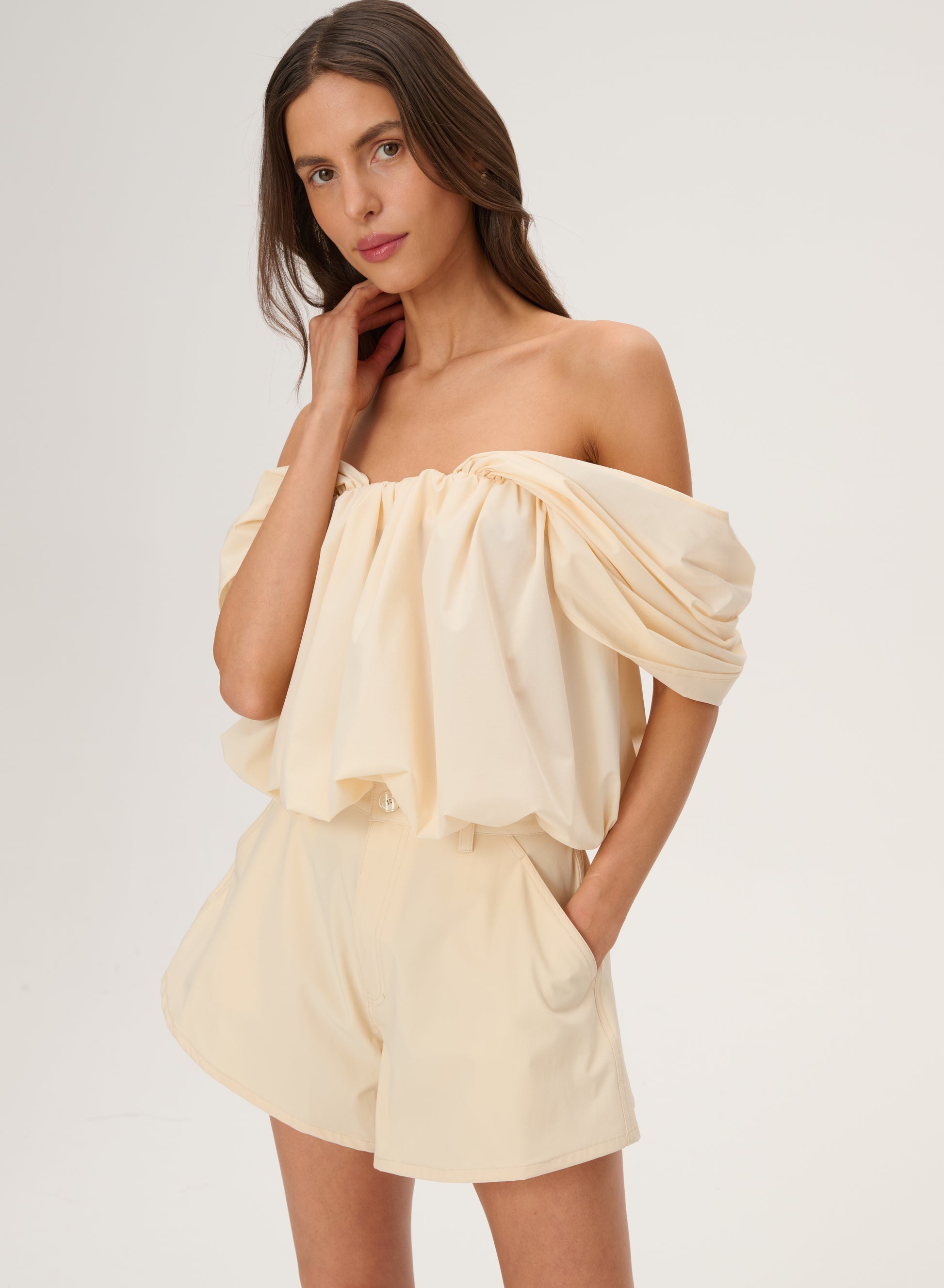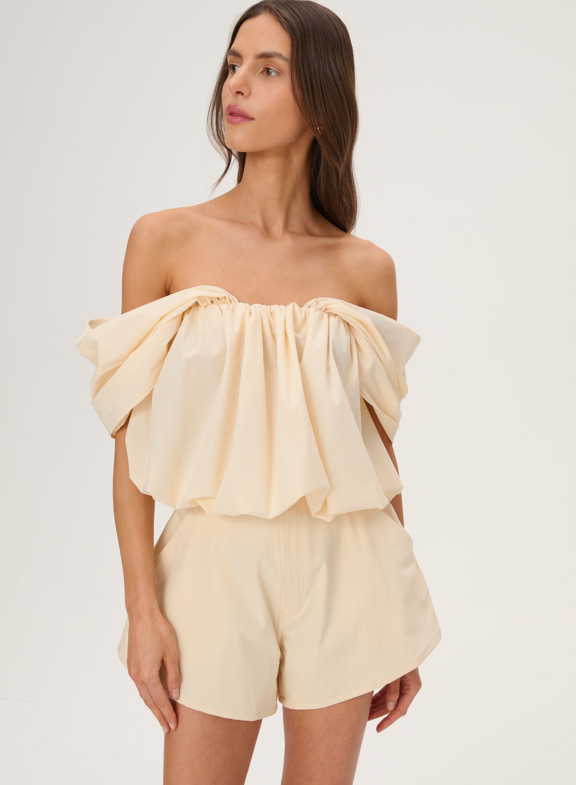 Butter-colored trapeze-cut ortalion shorts - Naomi