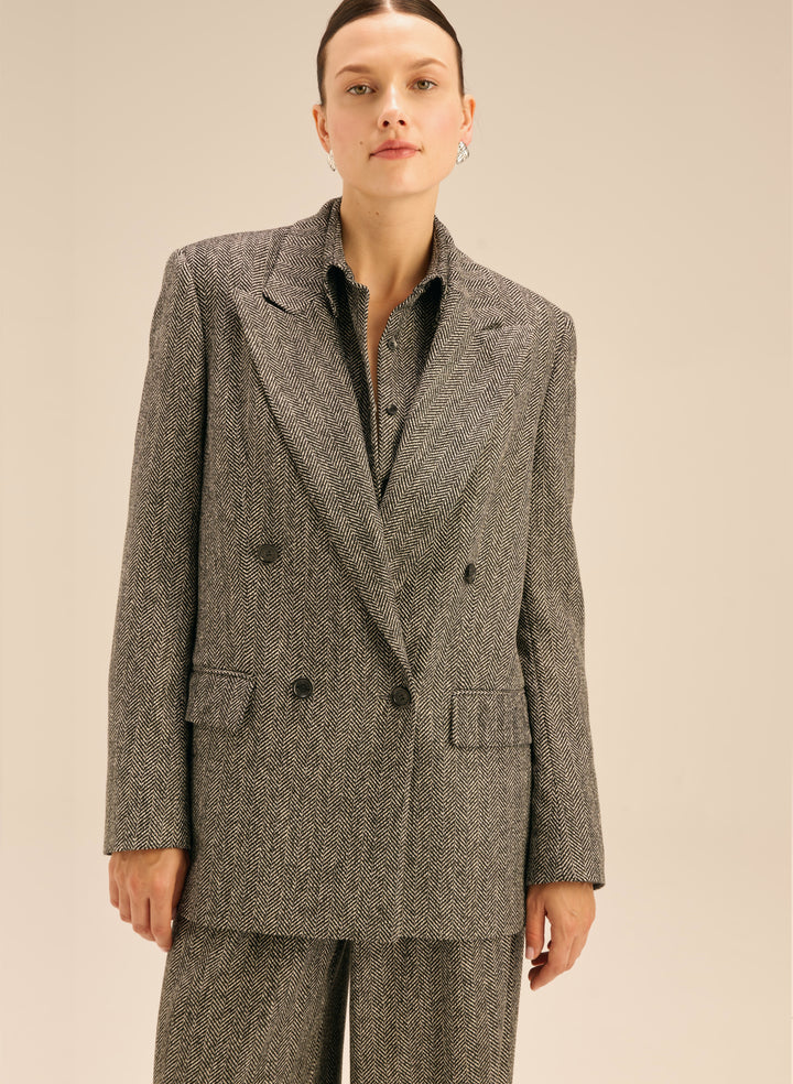 Straight-cut blazer with double-breasted closure in a fir tree pattern - Felix