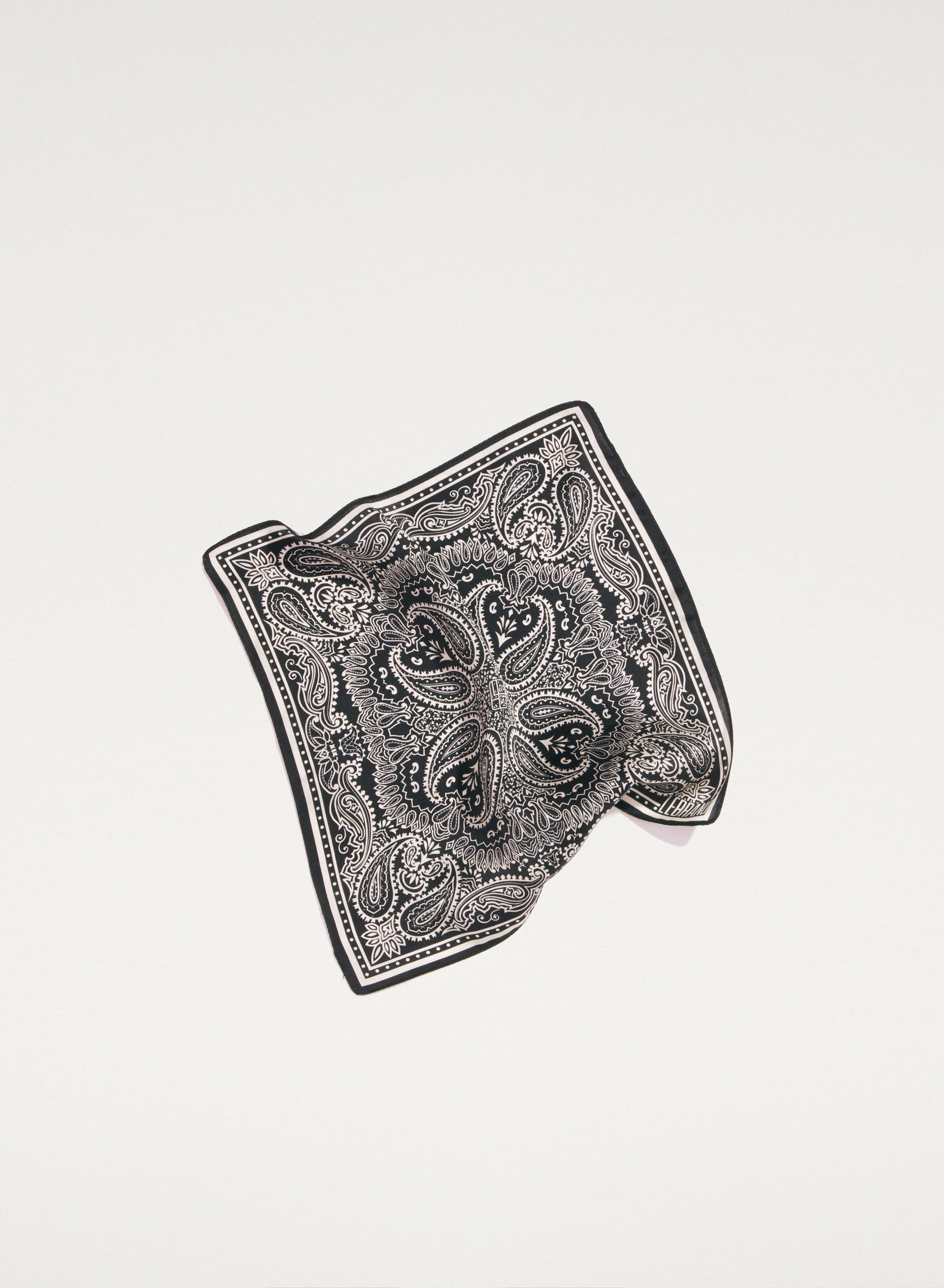 A universal bandana scarf, hand-finished, made of soft gray viscose.