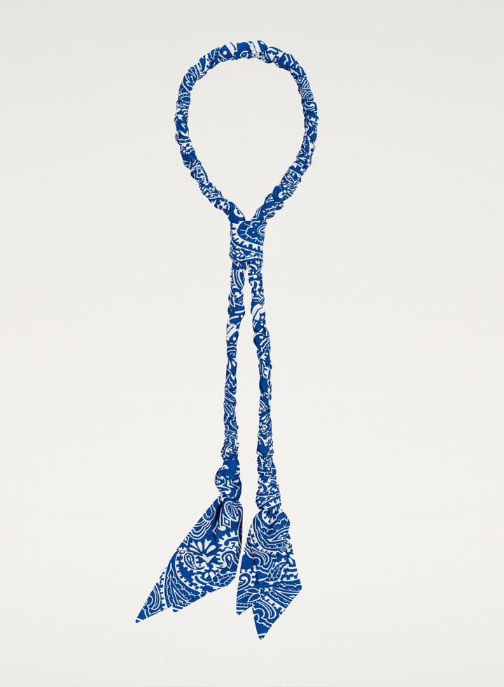 Cornflower blue fabric necklace with print - Adele