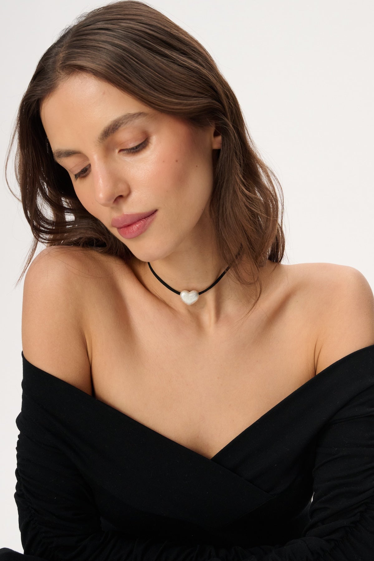 Handmade choker-style necklace, decorated with a heart-shaped pendant, made of a jewelry alloy of tin and silver, silver-plated with 999 silver and covered with ceramic, which protects against abrasion and color change.